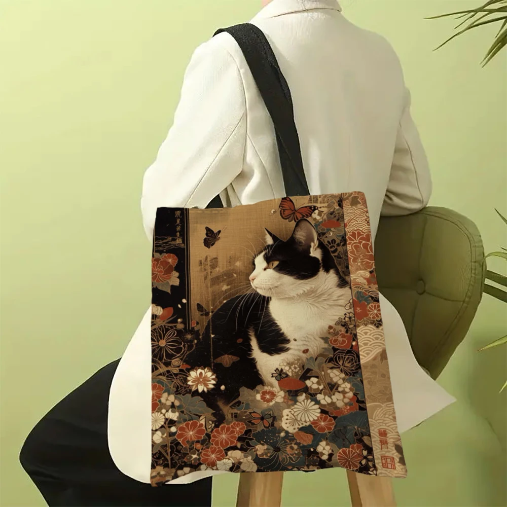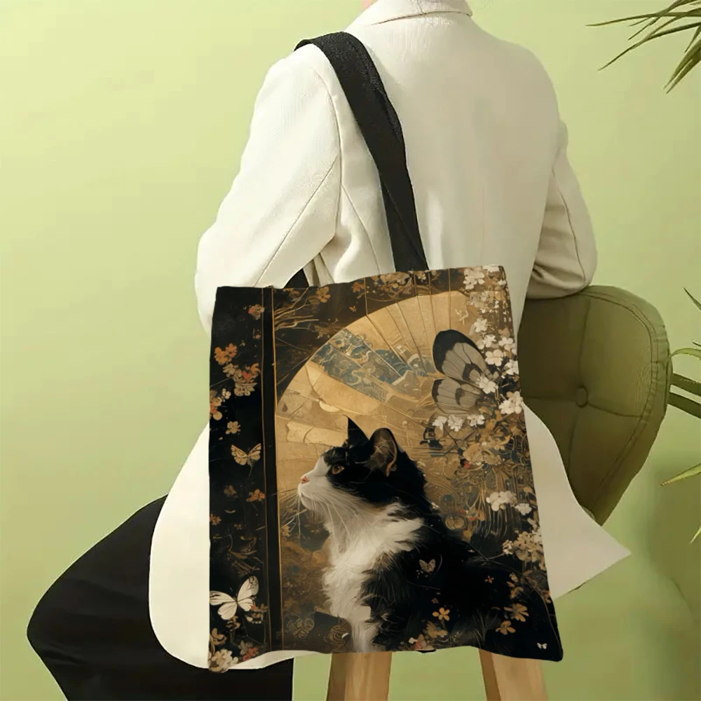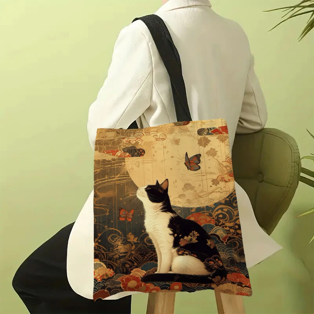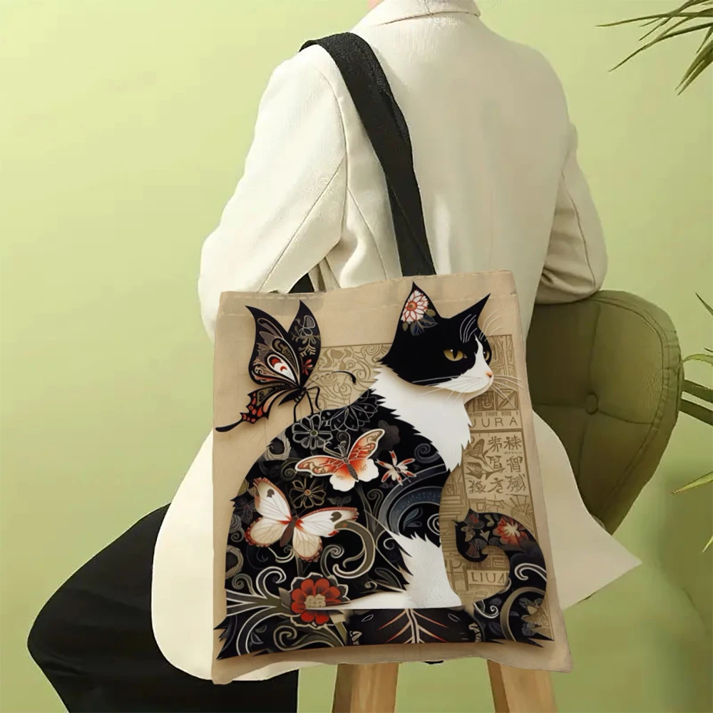 Butterfly Cat Pattern Bag High-Definition Digital Printed Shopping Bag Environmentally Friendly And Portable Linen Bag 7.2