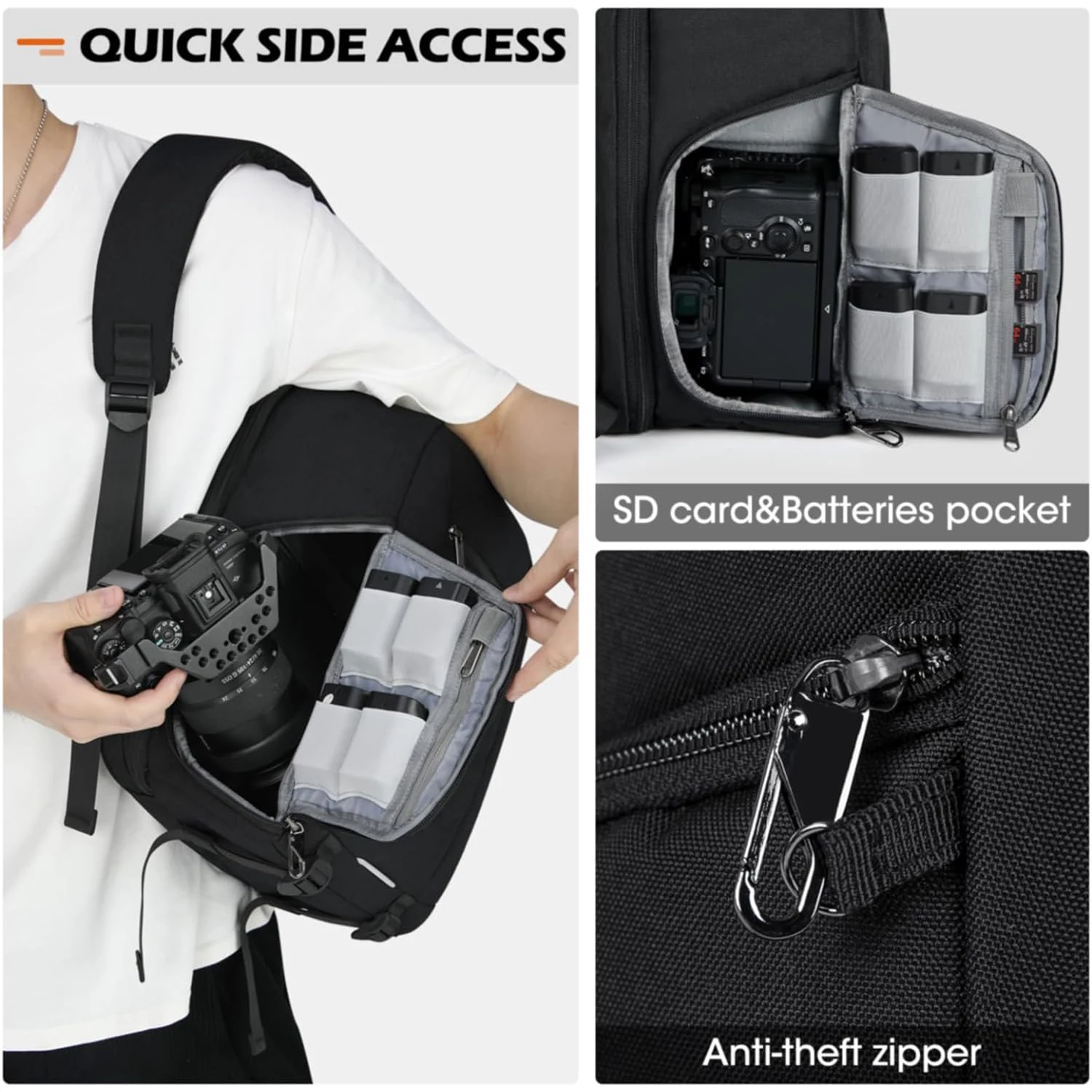 2. The camera bag backpack is padded with thicker foam to better protect camera and computer equipment from accidental impacts. Anti-theft zippers on the side keep camera equipment and other valuables safe while on the go.