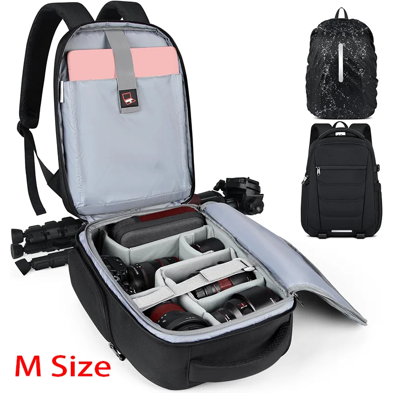 1. Movable padded dividers and an elastic strap to effectively separate and protect your valuable camera equipment. And when the need to carry your camera subsides,the dividers can be effortlessly removed, transforming the camera backpack into a versatile travel or everyday backpack,catering to your changing needs.
