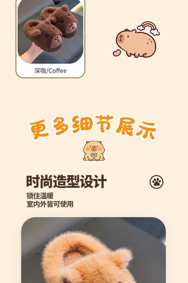 Capybara Children Slippers 2025 Winter New Cute Fluffy Cotton floor shoes woman Warm Indoor Cartoon Plush Floor Home Slippers