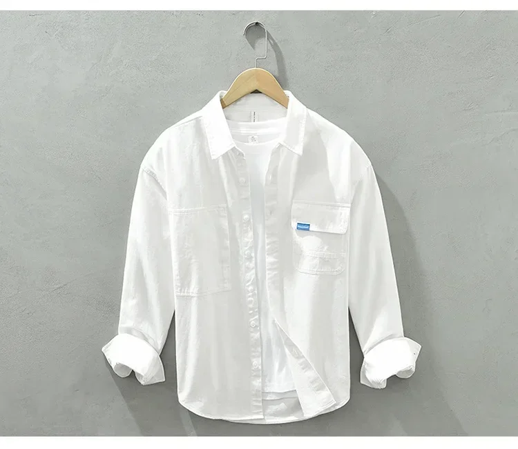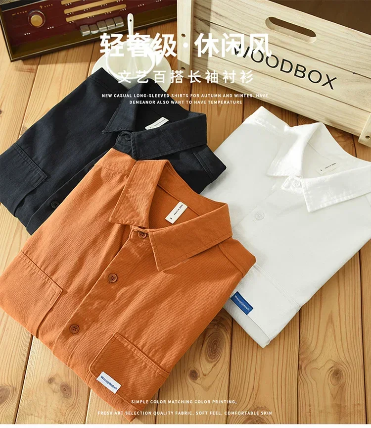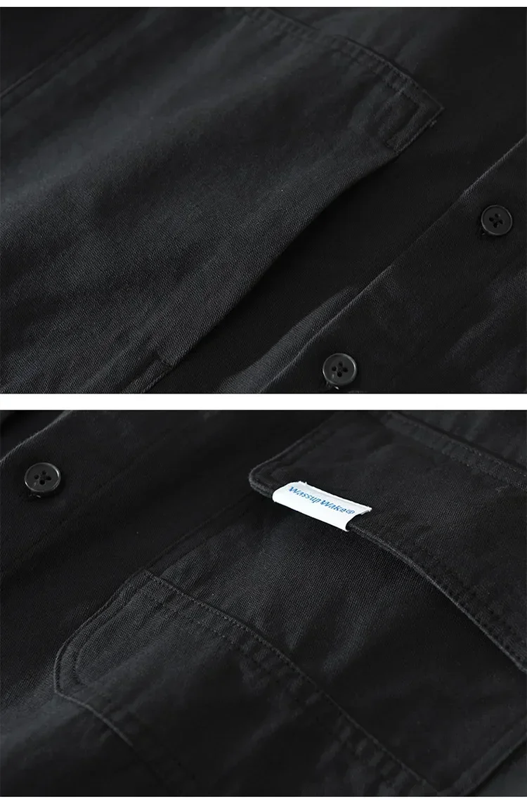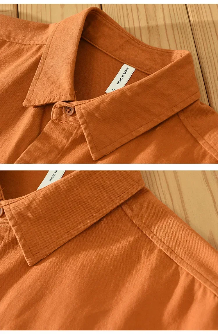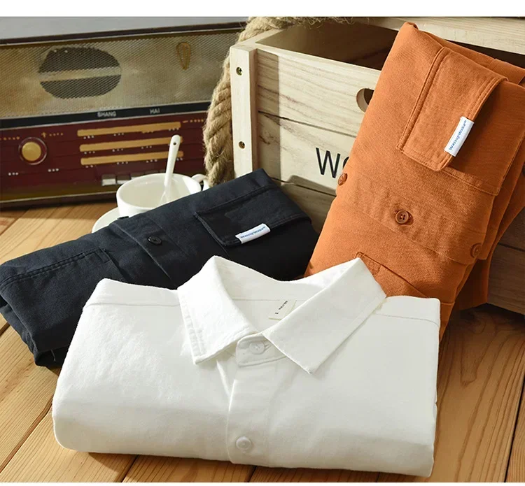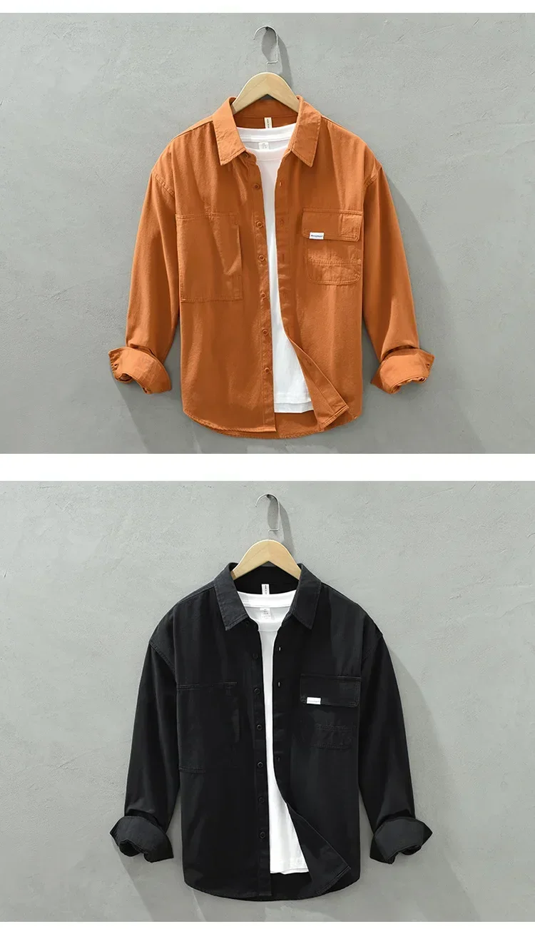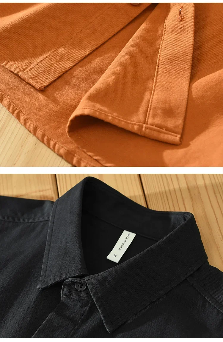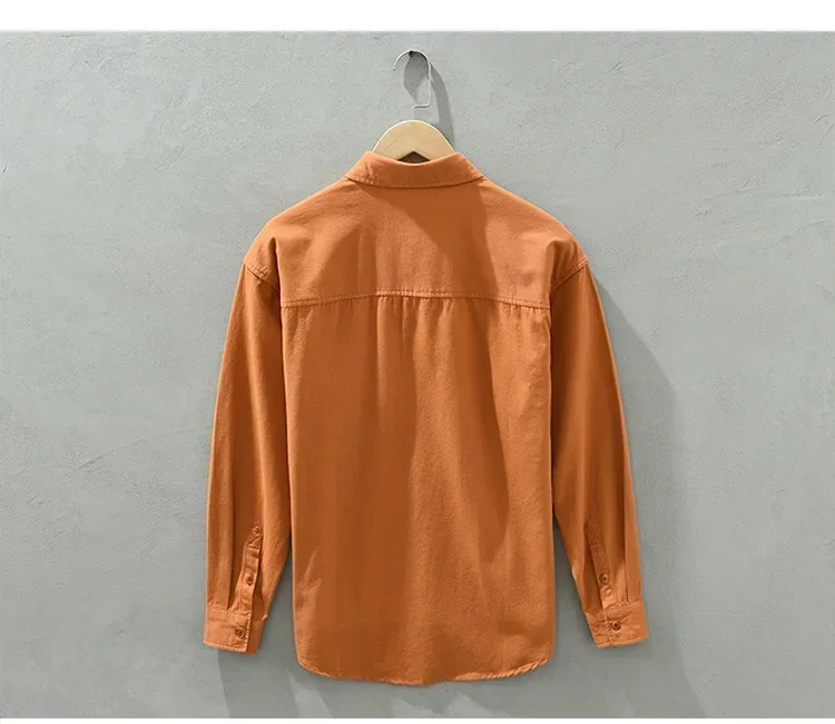 Cargo Shirt Men Spring Autumn Double Pocket Long Sleeve Shirts Male Casual Pure Cotton Orange Shirt Japanese Fashion Loose Shirt
