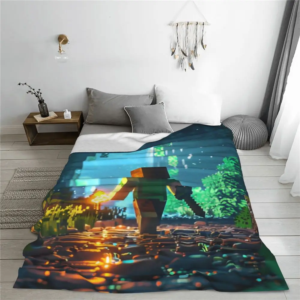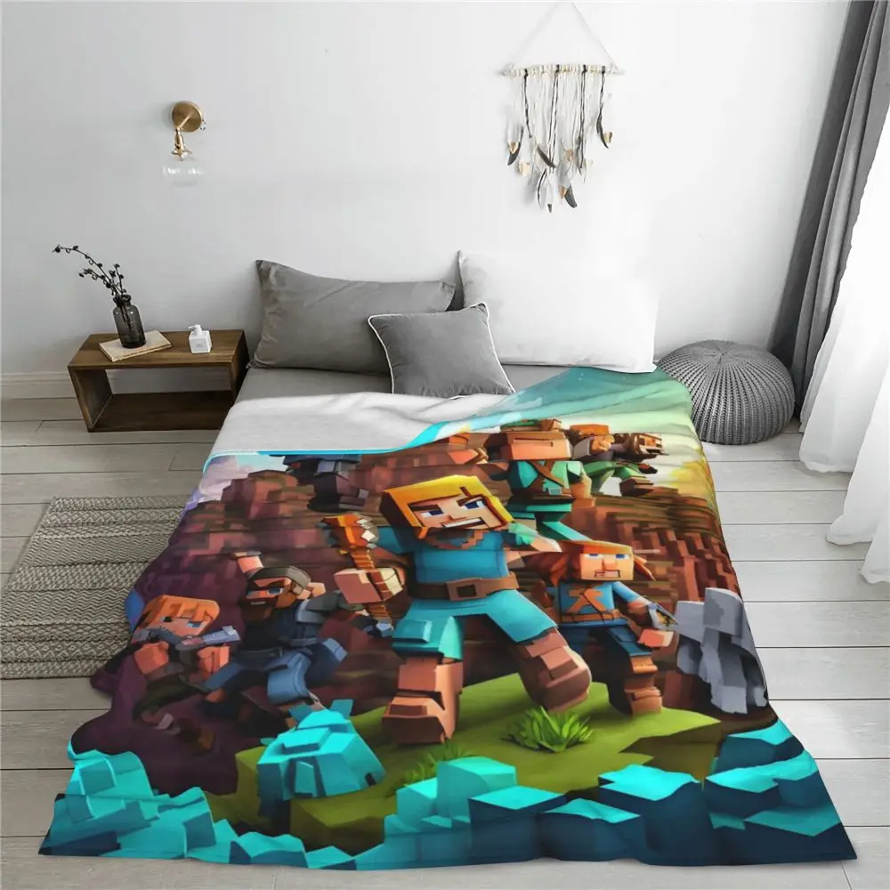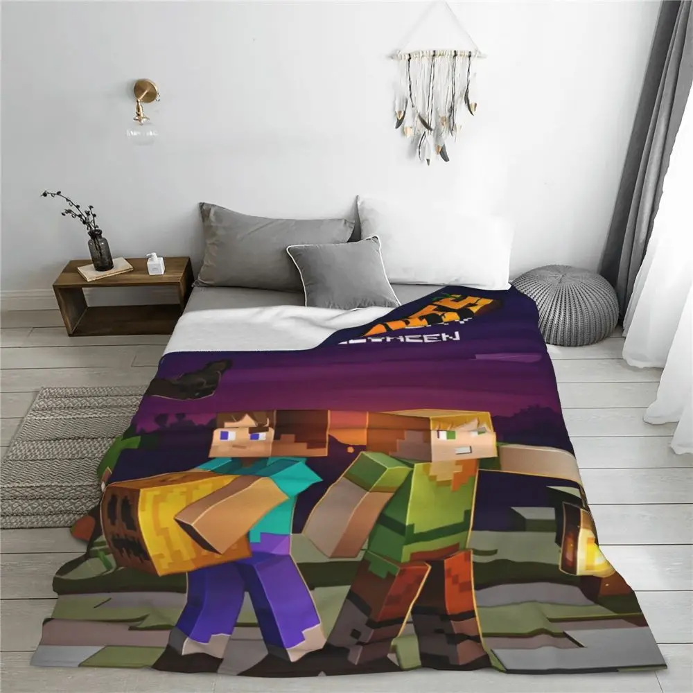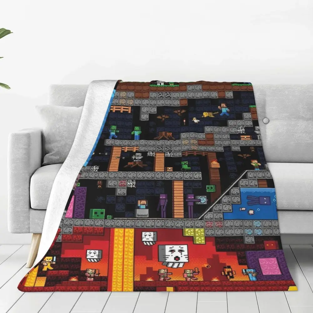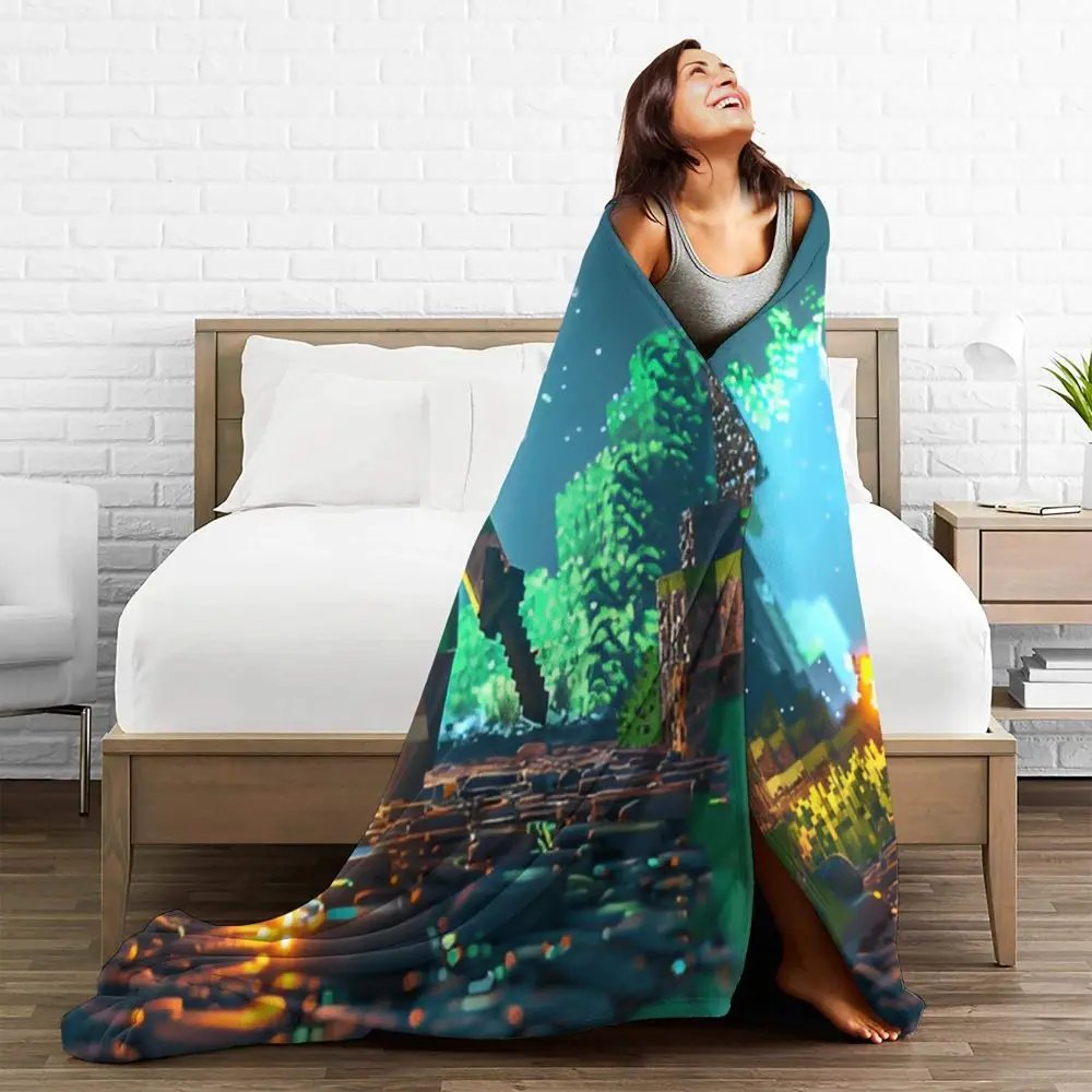 Cartoon Mines Pixel Game Crafts Flannel Blanket Super Warm Throw Blanket for Home Decor Decorative Street Trend Bedspread