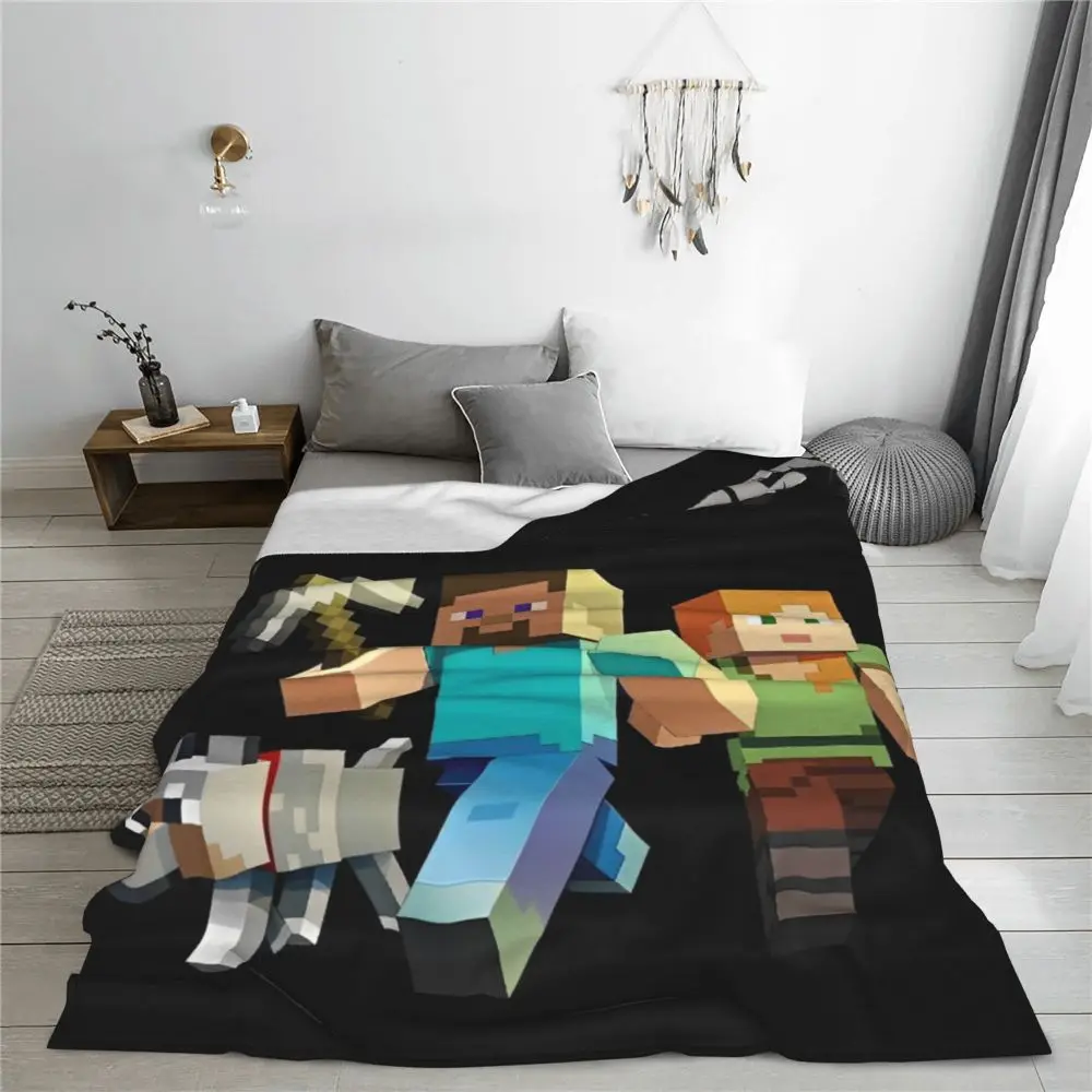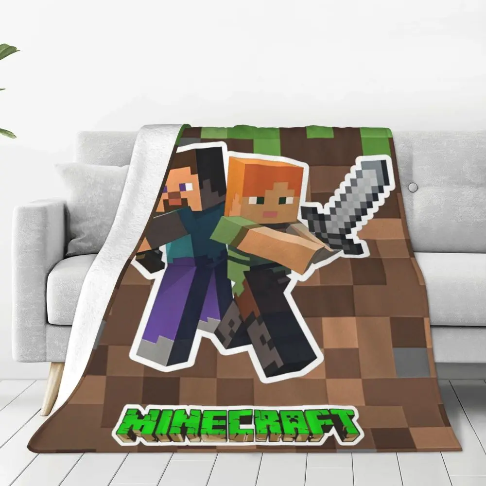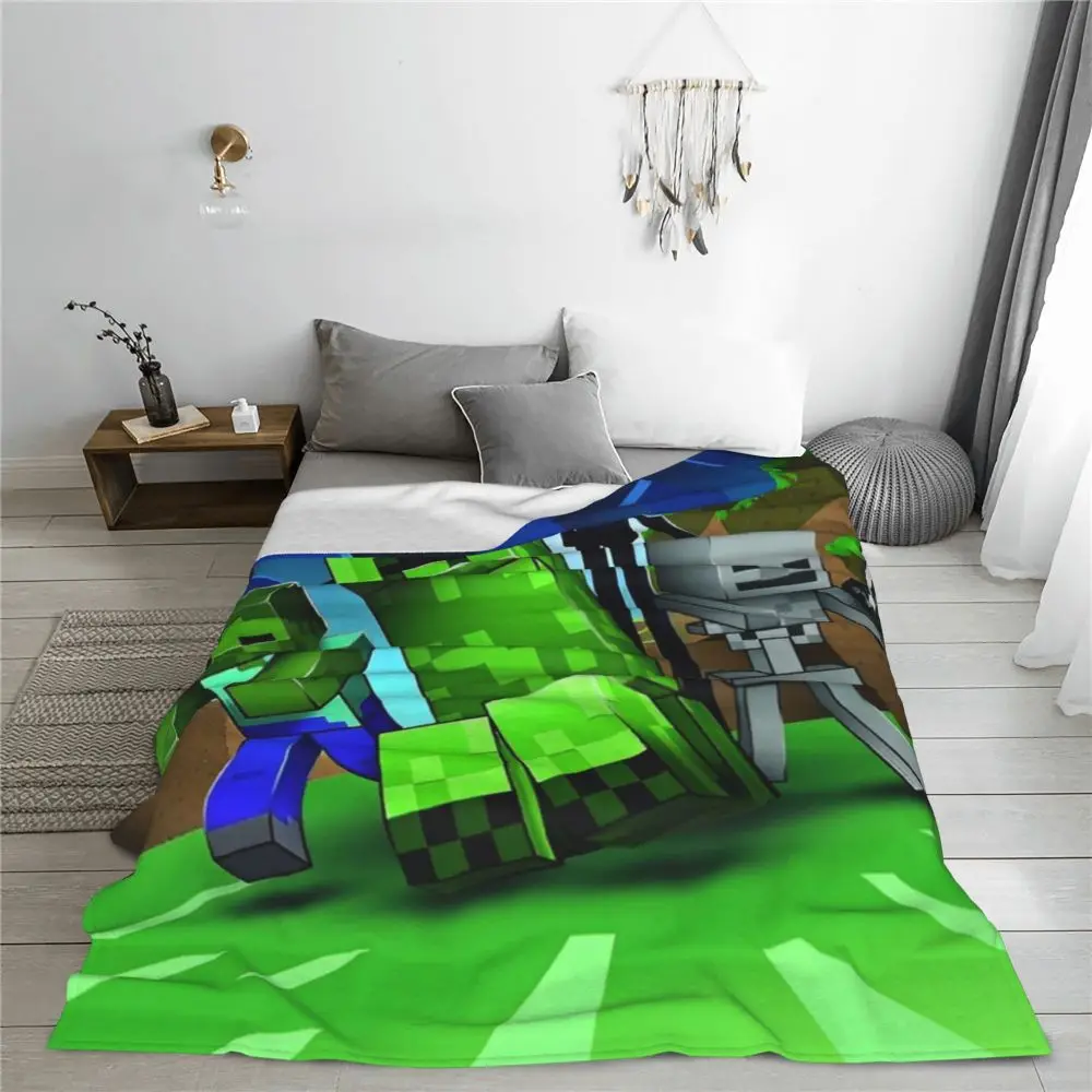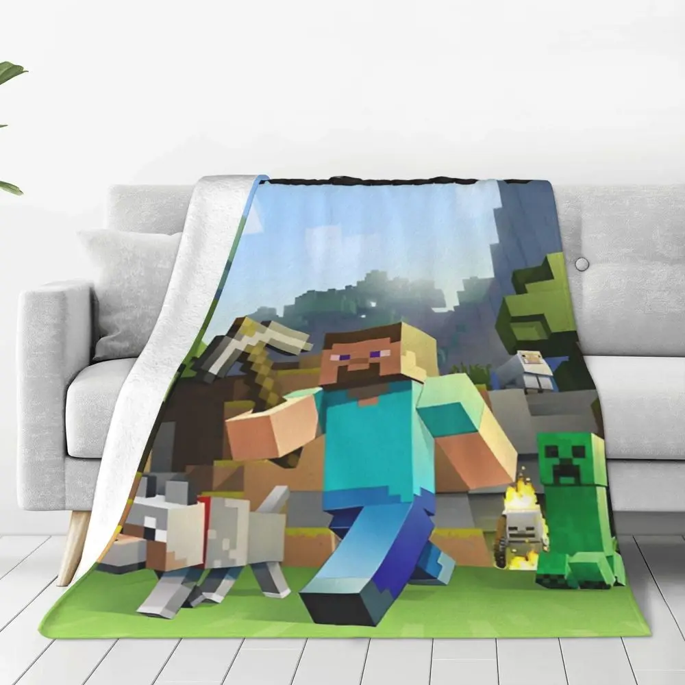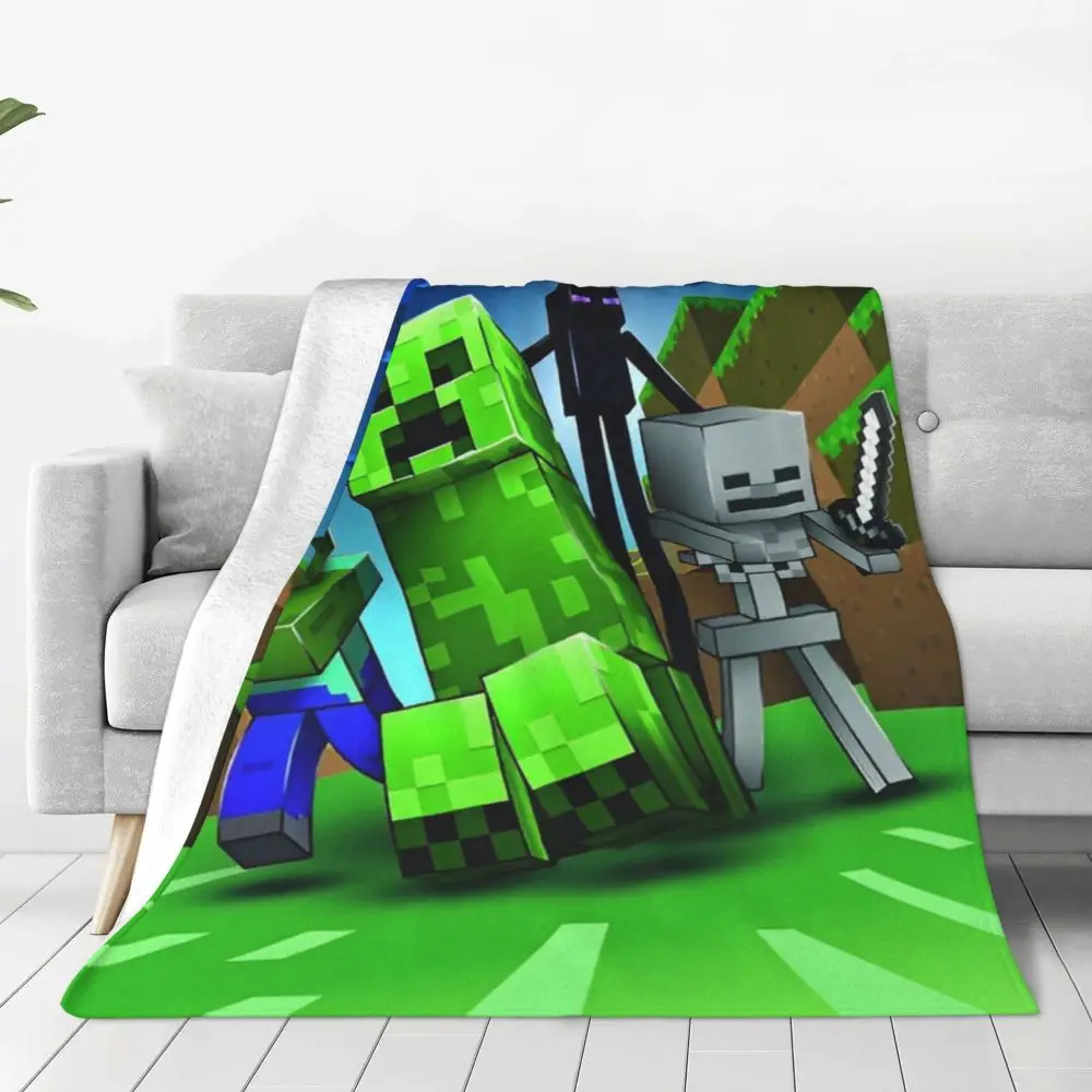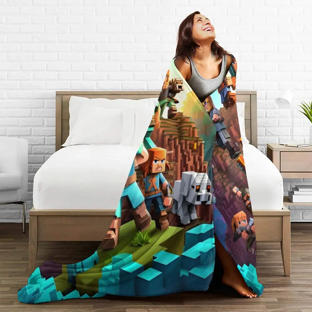 Cartoon Mines Pixel Game Crafts Flannel Blanket Super Warm Throw Blanket for Home Decor Decorative Street Trend Bedspread
