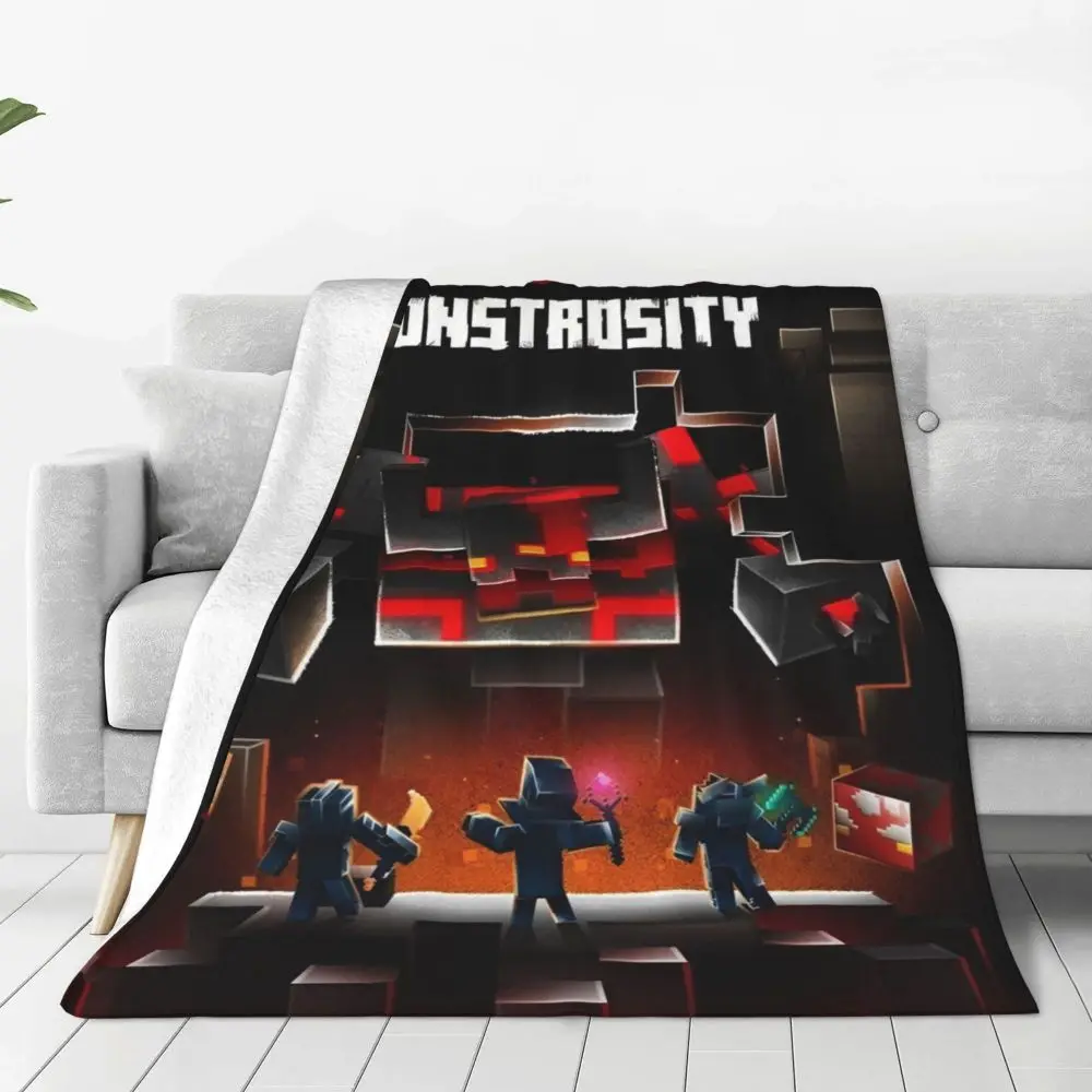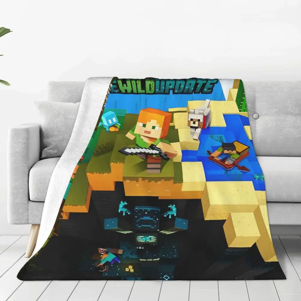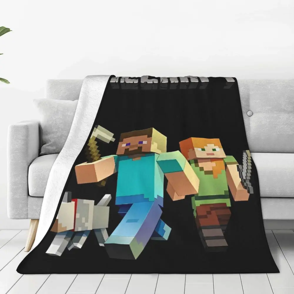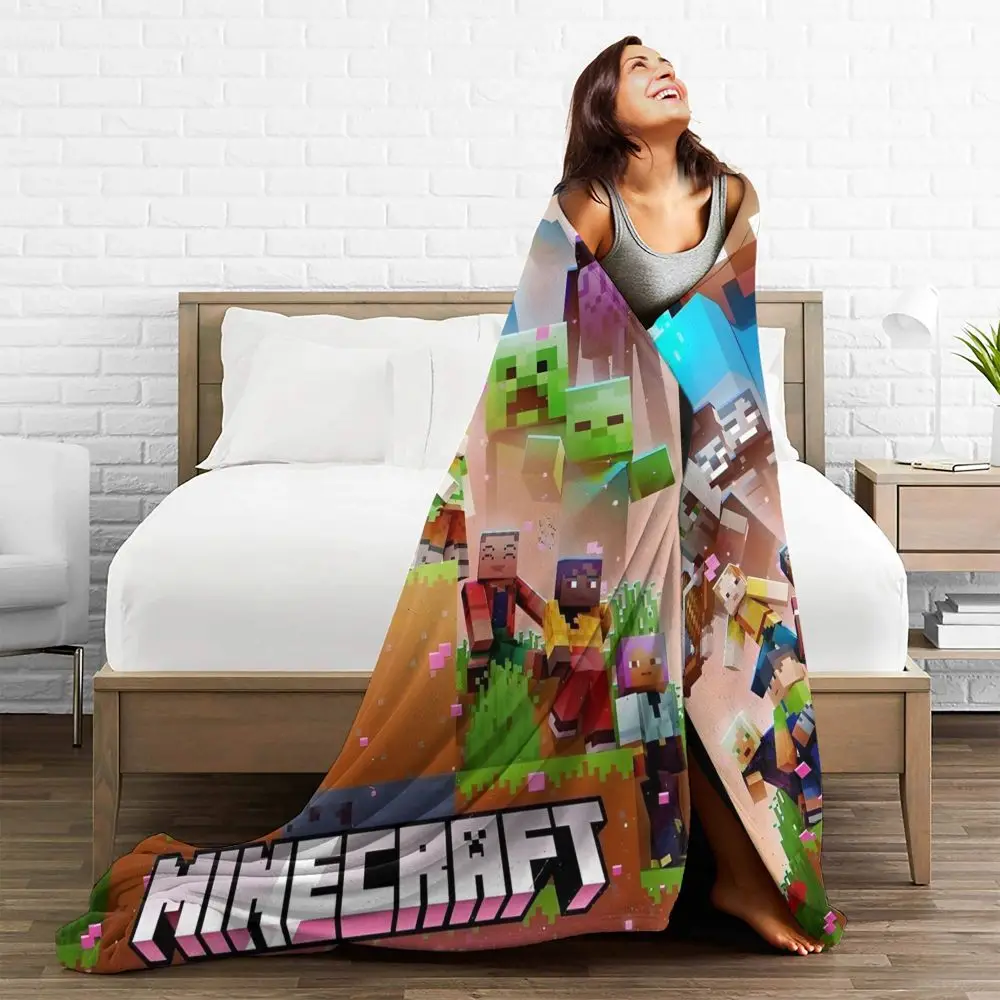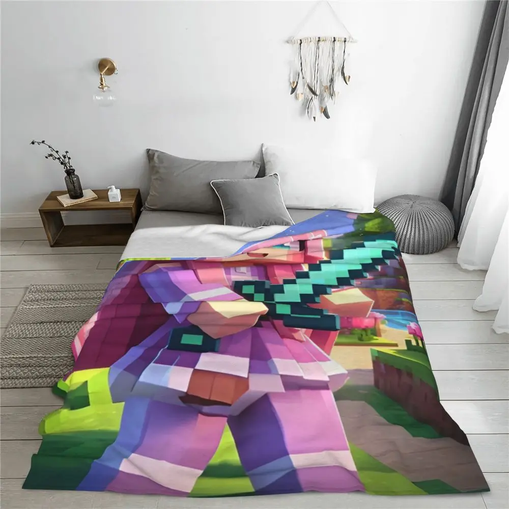 Cartoon Mines Pixel Game Crafts Flannel Blanket Super Warm Throw Blanket for Home Decor Decorative Street Trend Bedspread