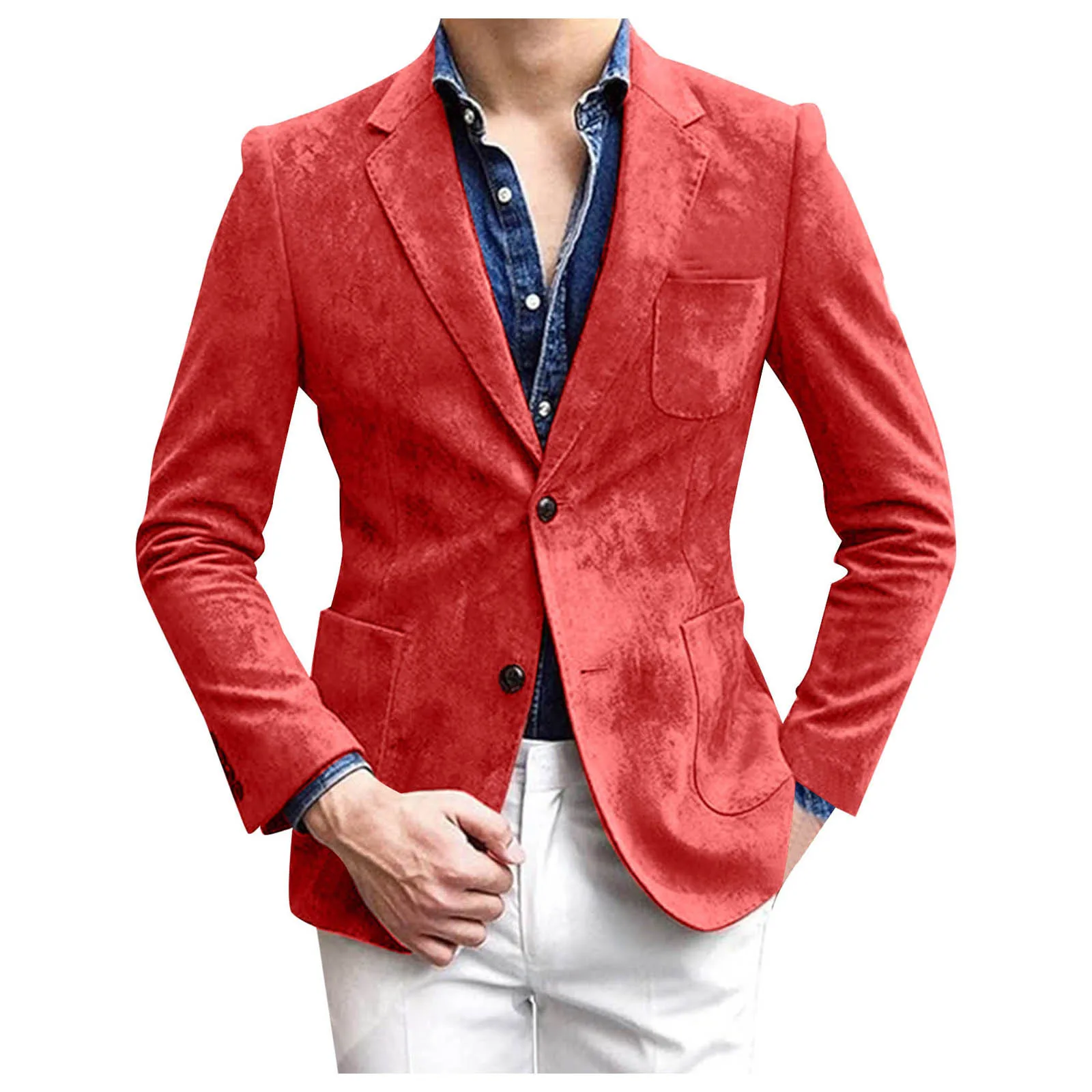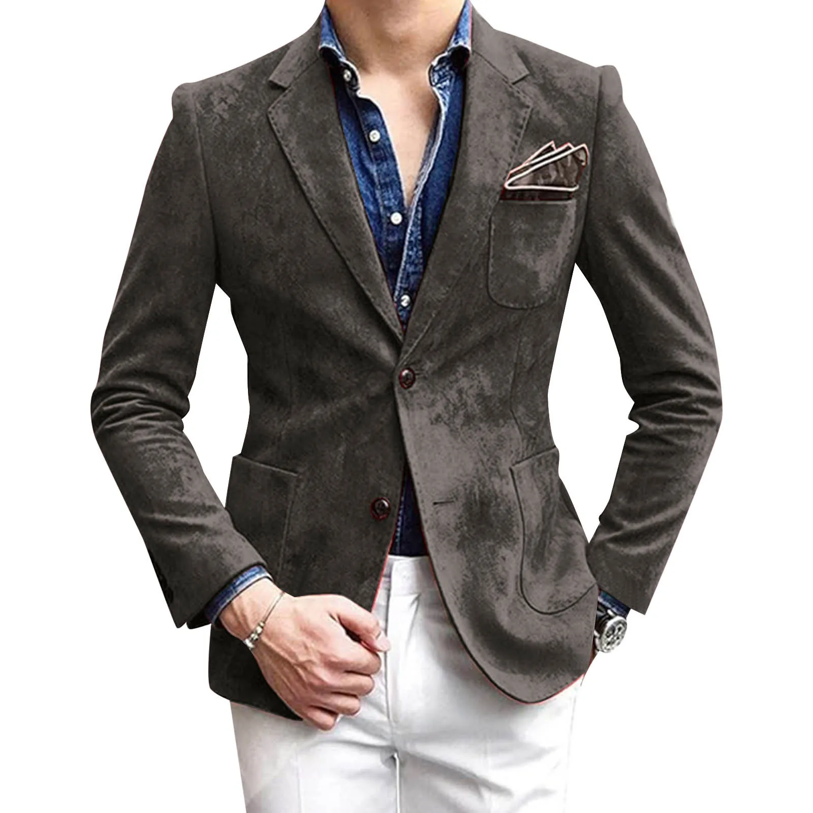 Casual Blazer One Button Business Suit Jacket Mens Fashion Velvet Long Sleeve Pockets Lapel Suit Jacket Blazers Para Hombre