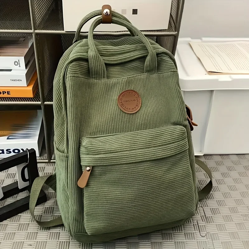 Casual Corduroy Backpack for Teens, 14 Laptop Compartment, High School & College Bag with Zipper Pocket, Backpacks for School