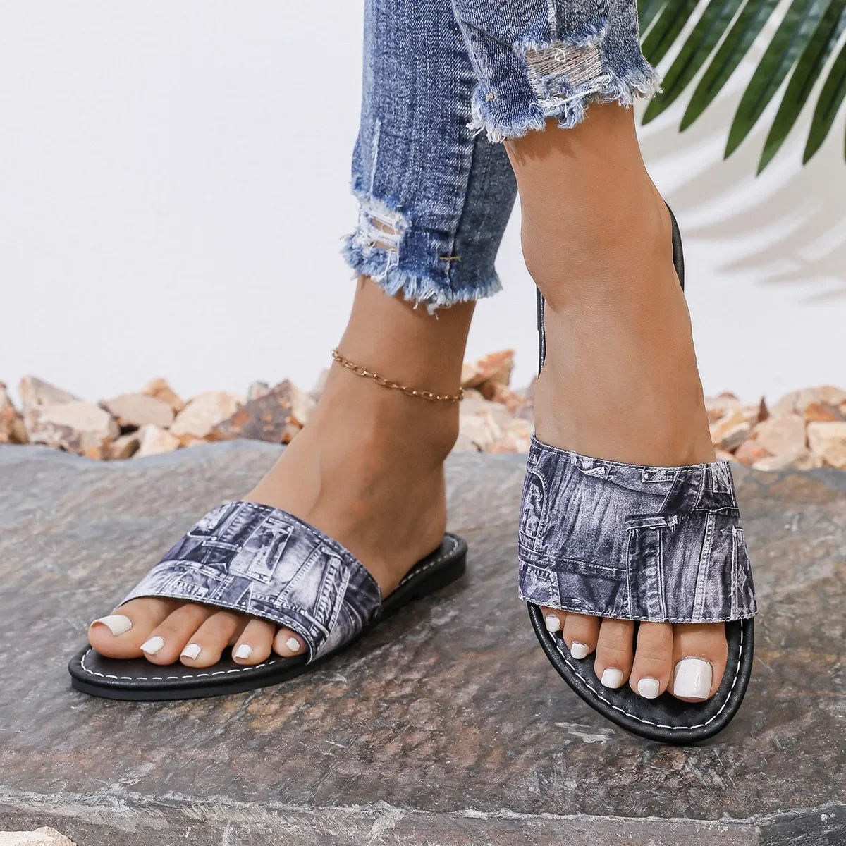Casual Denim Slippers for Women 2025 Fashionable Non-Slip Wear-Resistant Soft Bottom Comfortable Flat Heel Sandals