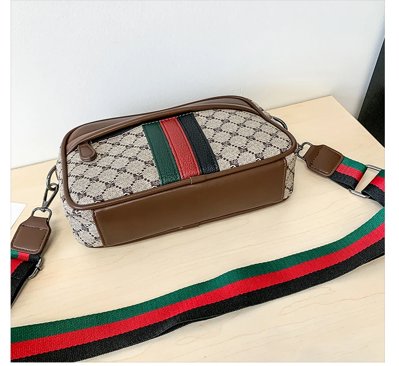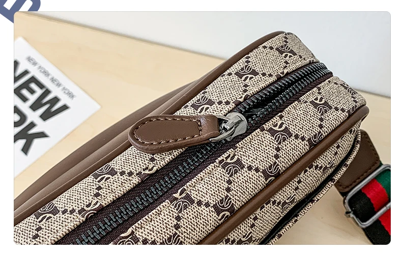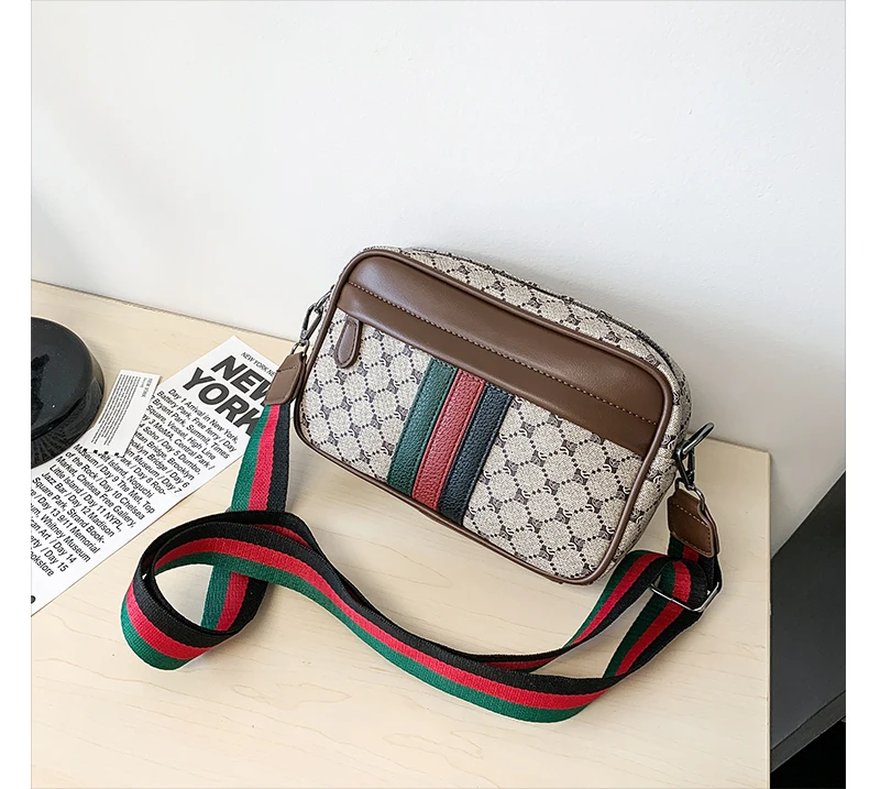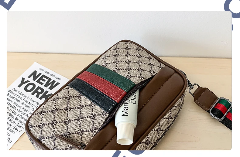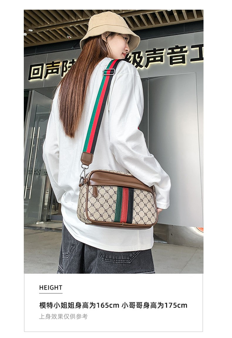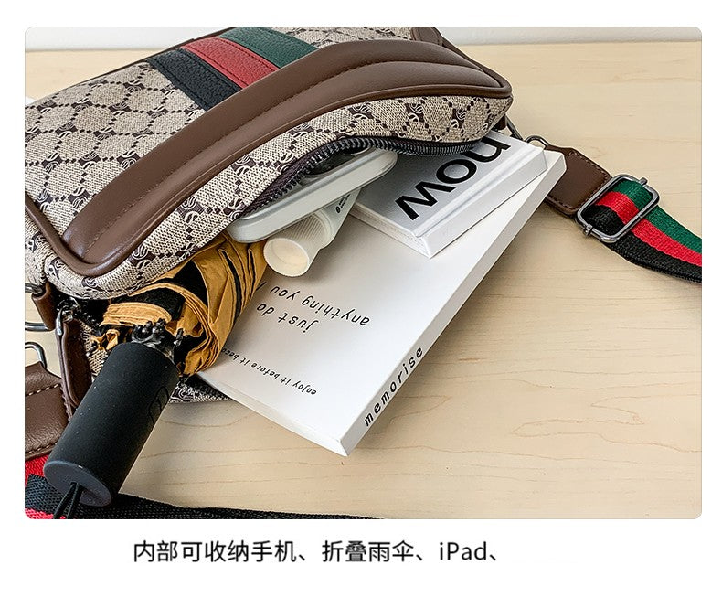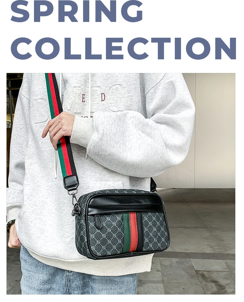 Casual Lightweight Sling Bag with Color Block Strap for Men PU Leather Messenger Bag Trend Wide Strap Crossbody Bags Designer
