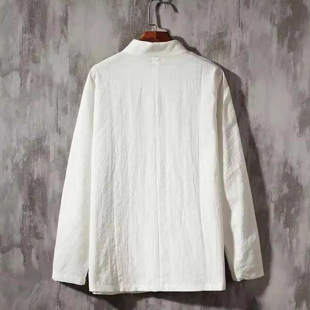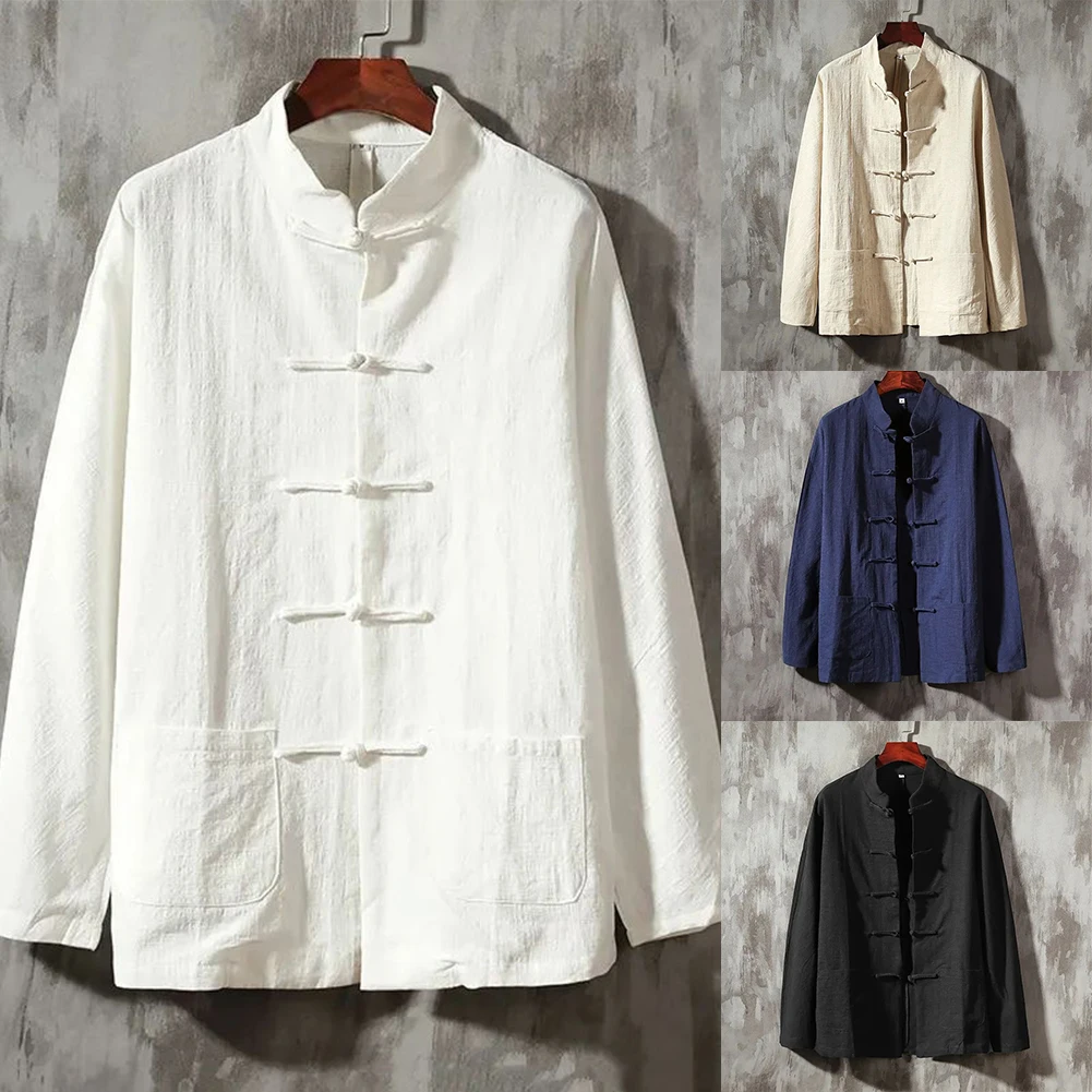 Casual Men's Chinese Style Linen Shirts Stand Collar Traditional Kung Fu Tai Chi Shirt Coat Tang Suit Uniform Jacket Men Clothes