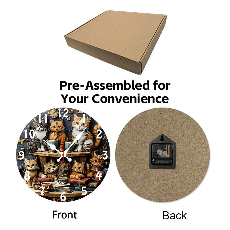 Cat Design Wooden Round Silent Hanging Wall Clock, Suitable For Living Room, Office, Study Room, Bedroom, Home Decoration