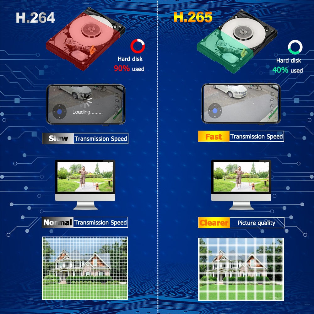 H.265 is clearer than H.264, with a smaller code stream and smoother transmission, which can save 40%-50% of storage space and reduce storage costs.