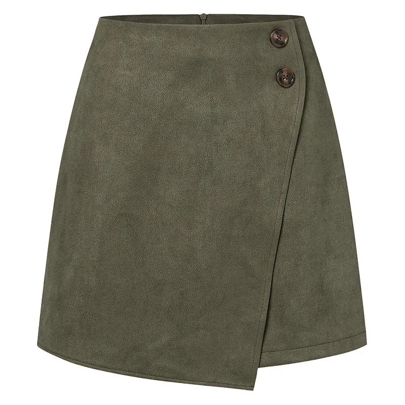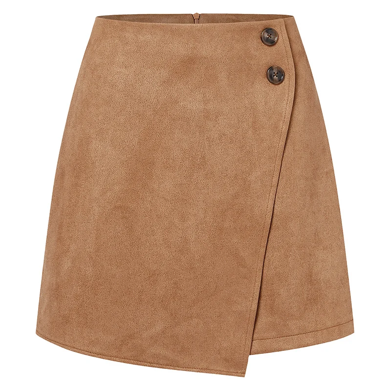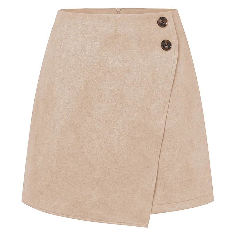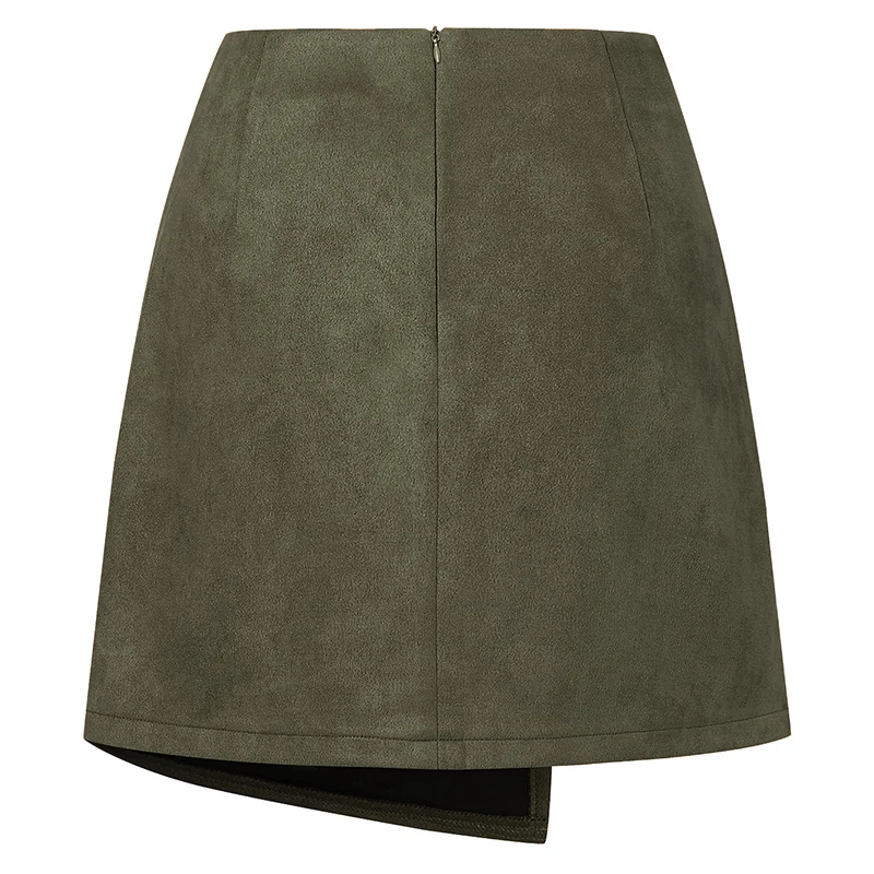 Chic Faux Suede Mini Skirts Women Design Irregular Button Skirts Woman Spring Autumn High Waist Zipper Up A-Line Skirt Ladies