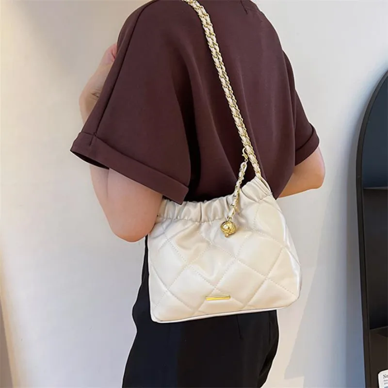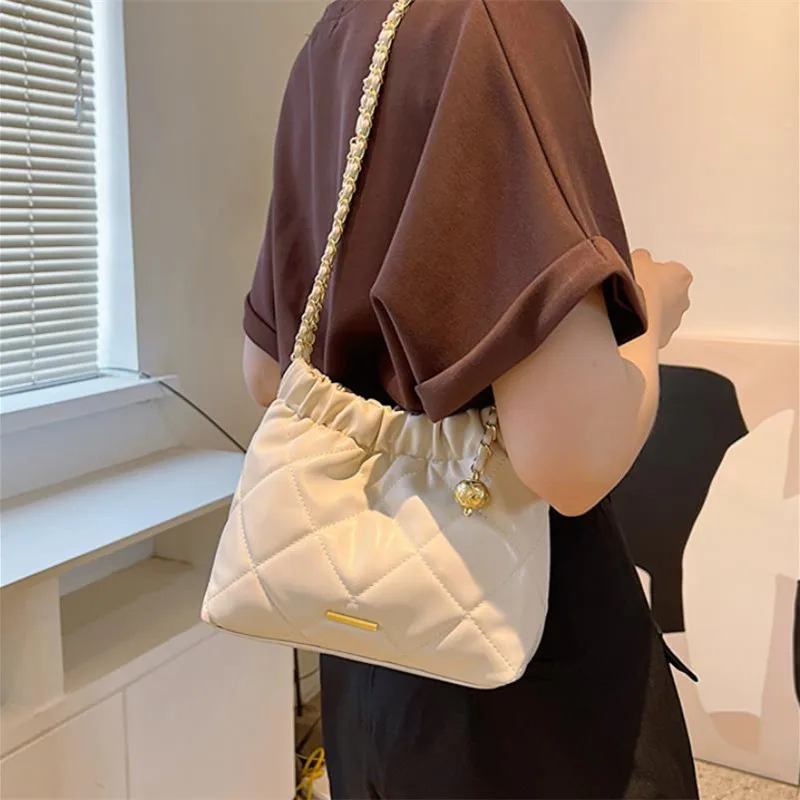 Chic Quilted Embroidered Thread Pu Women's Bag Fashion Chain Single Shoulder Bag, Stylish Crossbody Bag Perfect for Everyday Use