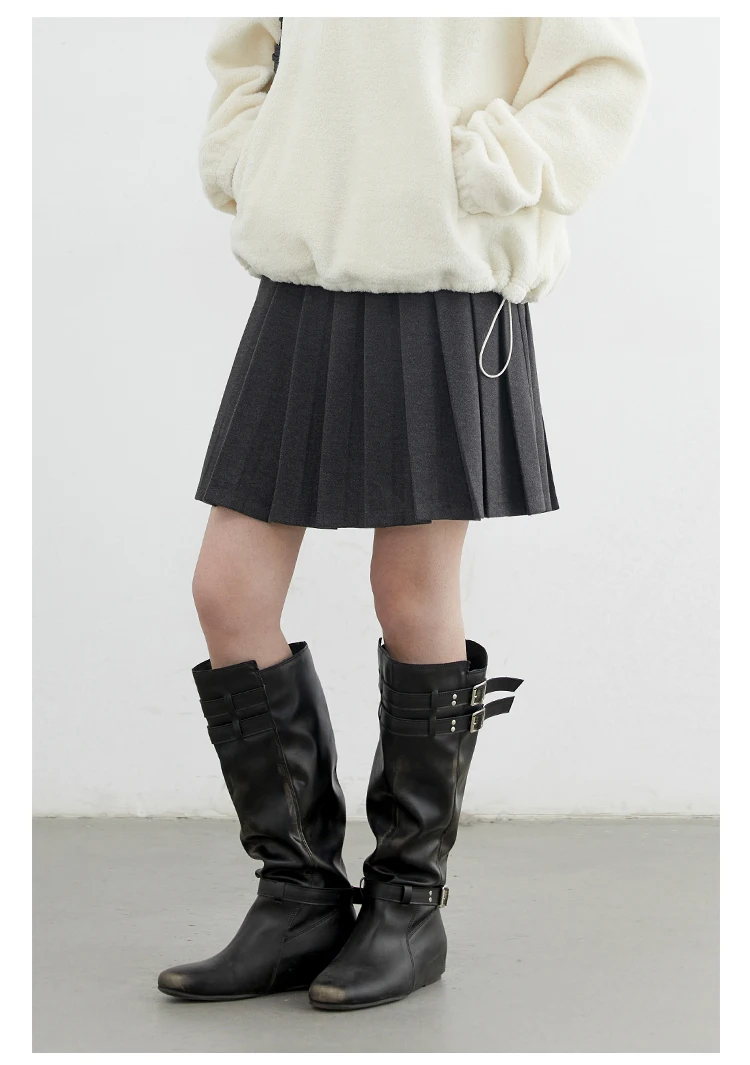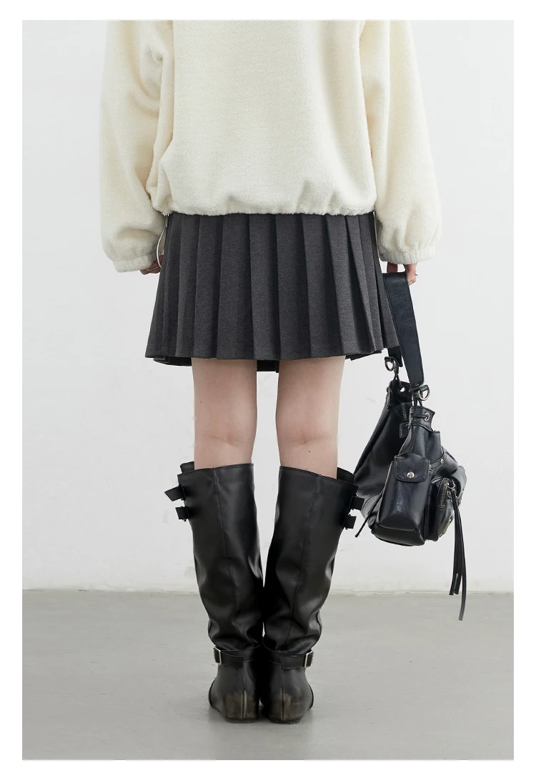 CHIC VEN Women Pleated Skirt High Waist Casual Preppy Style A-line Thick Mini Skirt for Girl Autumn Winter 2025 Ladies Clothing
