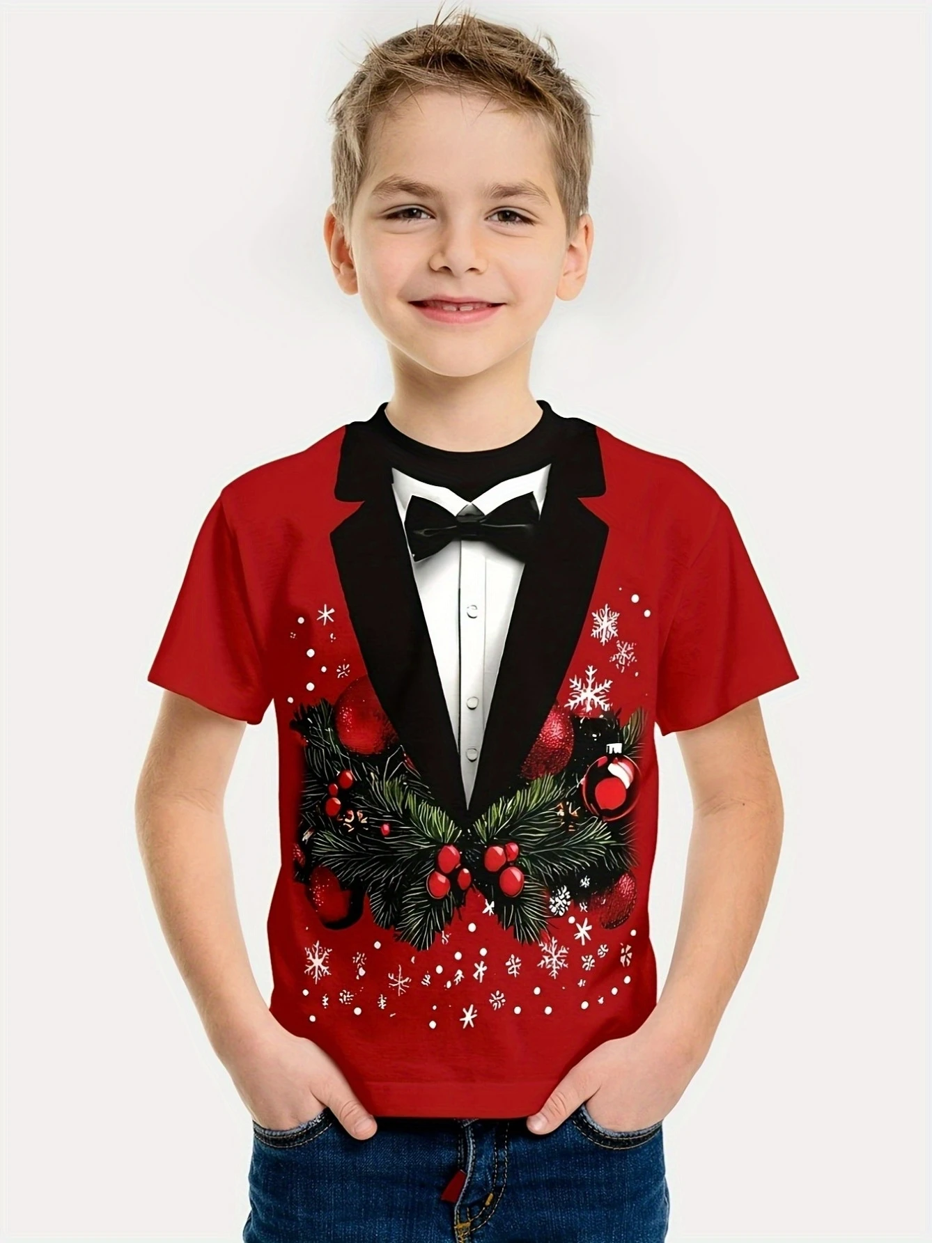 Children's Christmas T-Shirt 3D Print Funny Tops Festival Short Sleeve Baby Clothes 2-10y Christmas Gift for Boys Girls Clothing