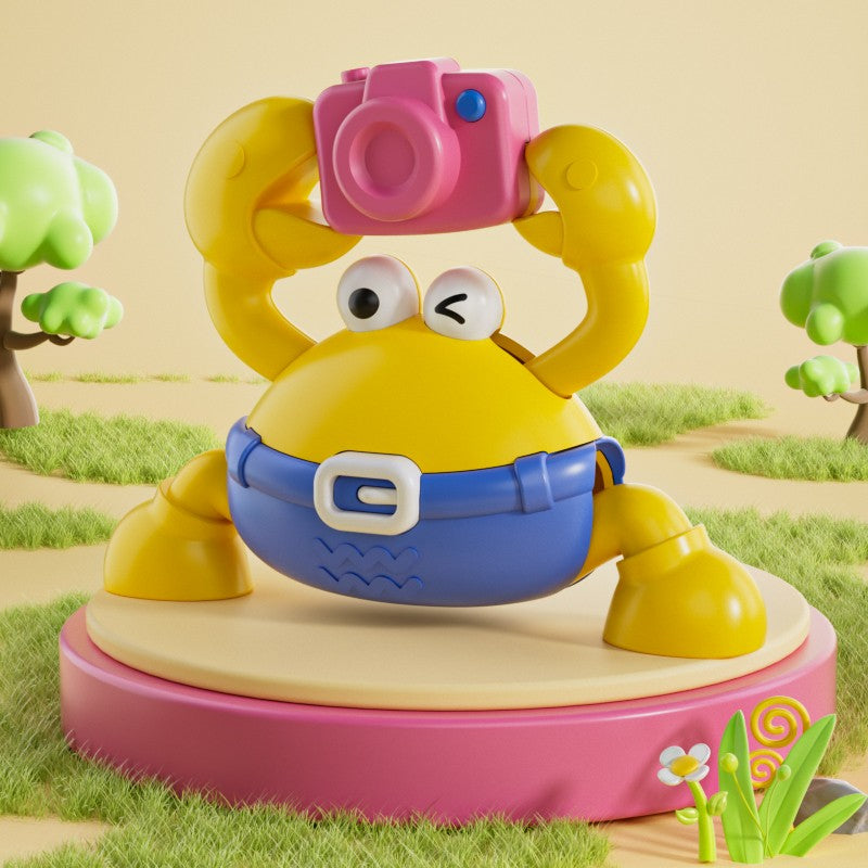 ? Interesting camera pose - this cute crab holding a small camera stimulates children's curiosity and imagination. Perfect for creative gaming time!