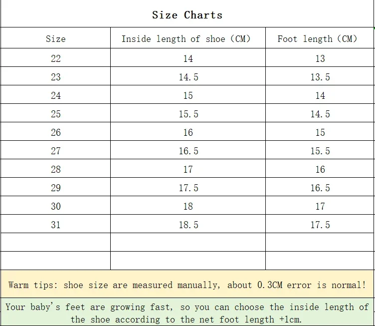 These shoes are designed to fit true to size, ensuring a perfect fit for your little one's growing feet.