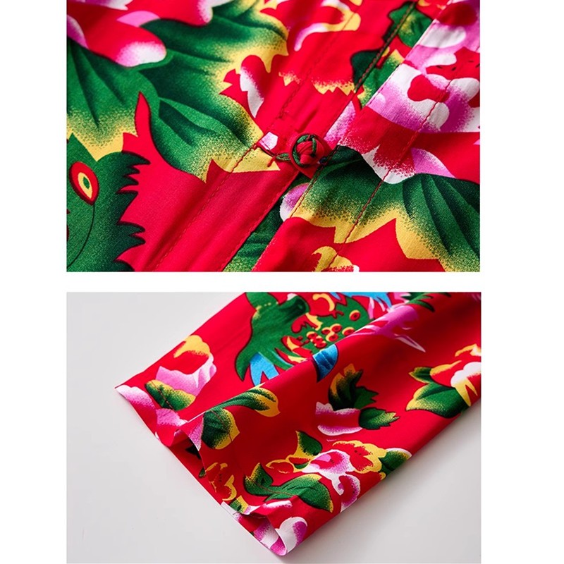 Chinese Style Men's Stand-up Collar Long-sleeved Shirt, Single-breasted Printed Shirts, Fashion Casual Camisas, Red Green Blue