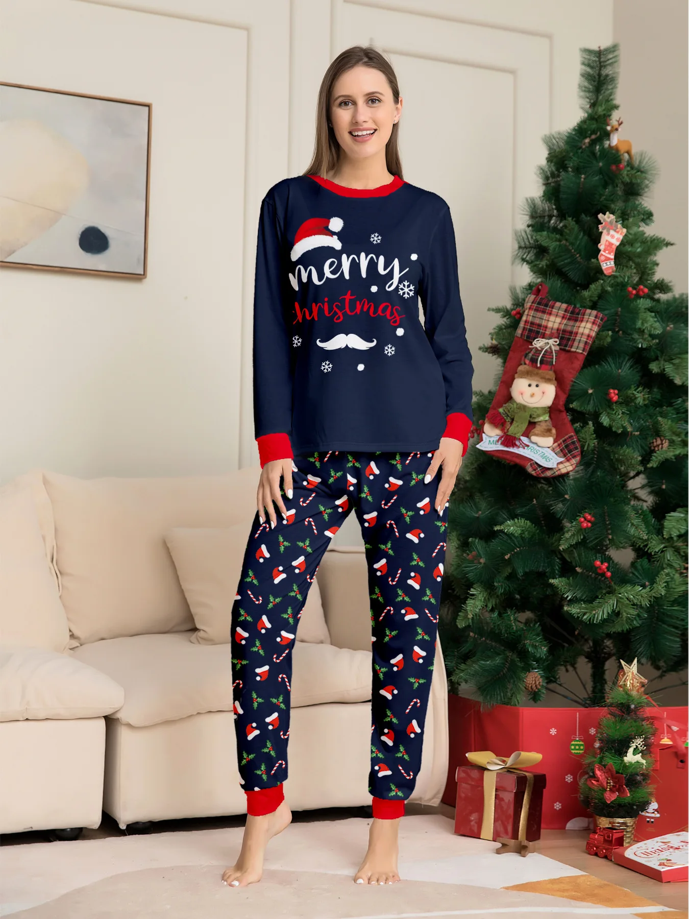 Christmas Family Matching Outfits Mother Father Kids Pajamas Set Santa Hat Print Loose Xmas Sleepwear Baby Romper Dog Clothes