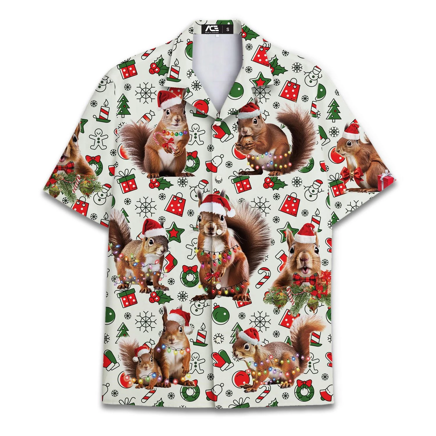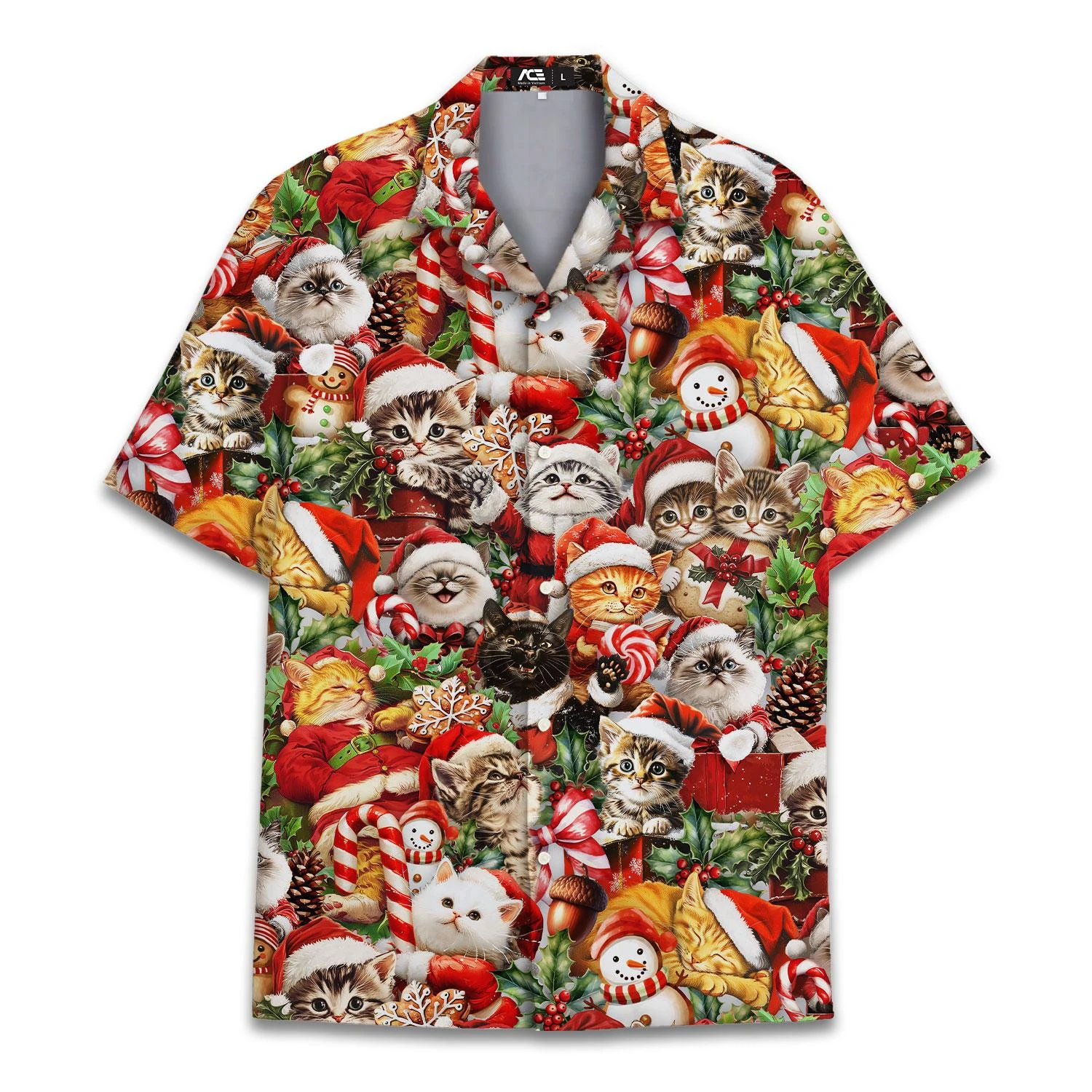 Christmas Hat Animal Graphic Blouse Santa Hawaiian Shirt Men Women Youth, Funny Raccoon Cat Shirts Holiday Aloha Xmas Outfit