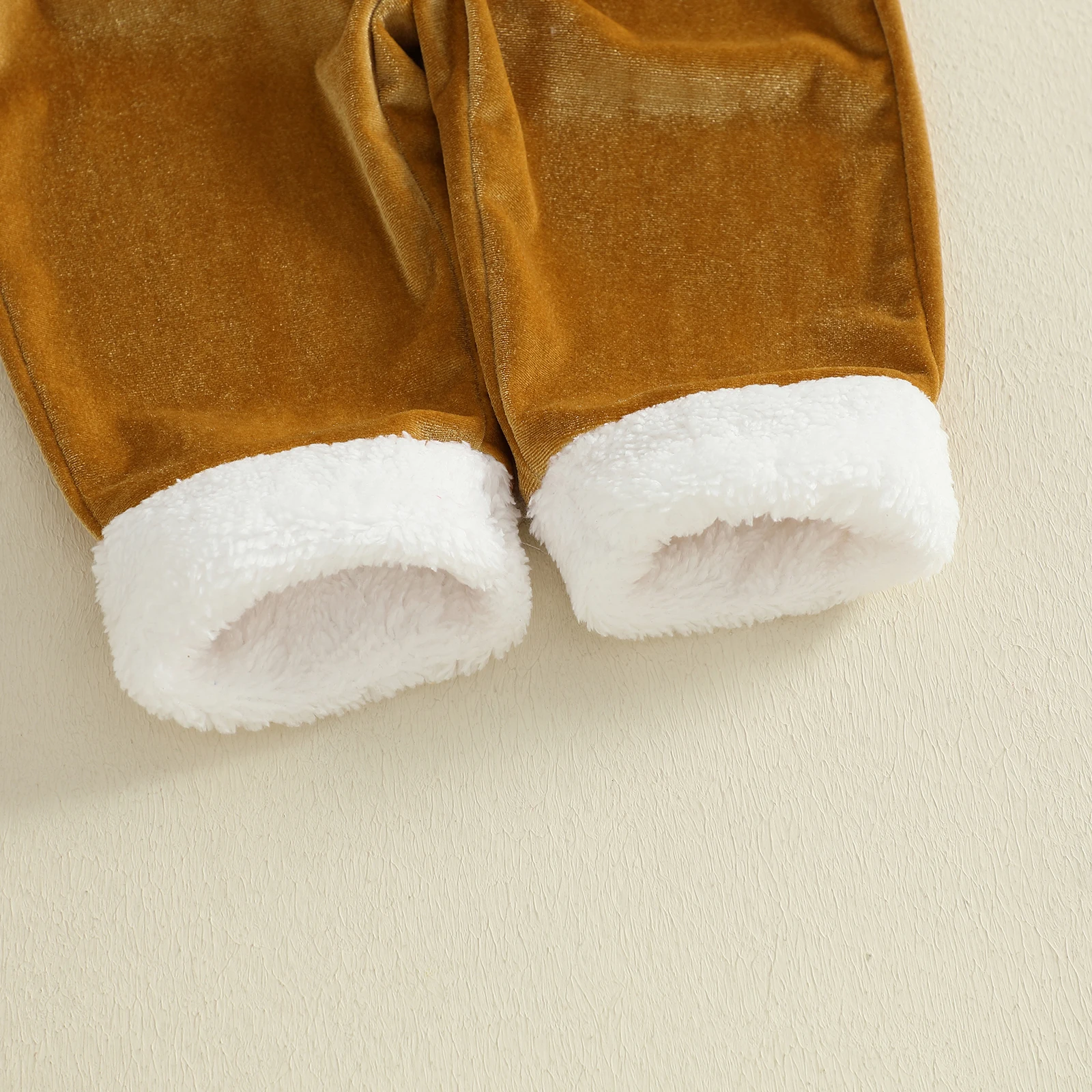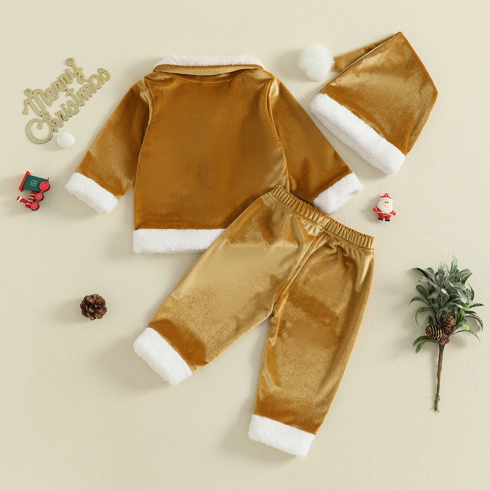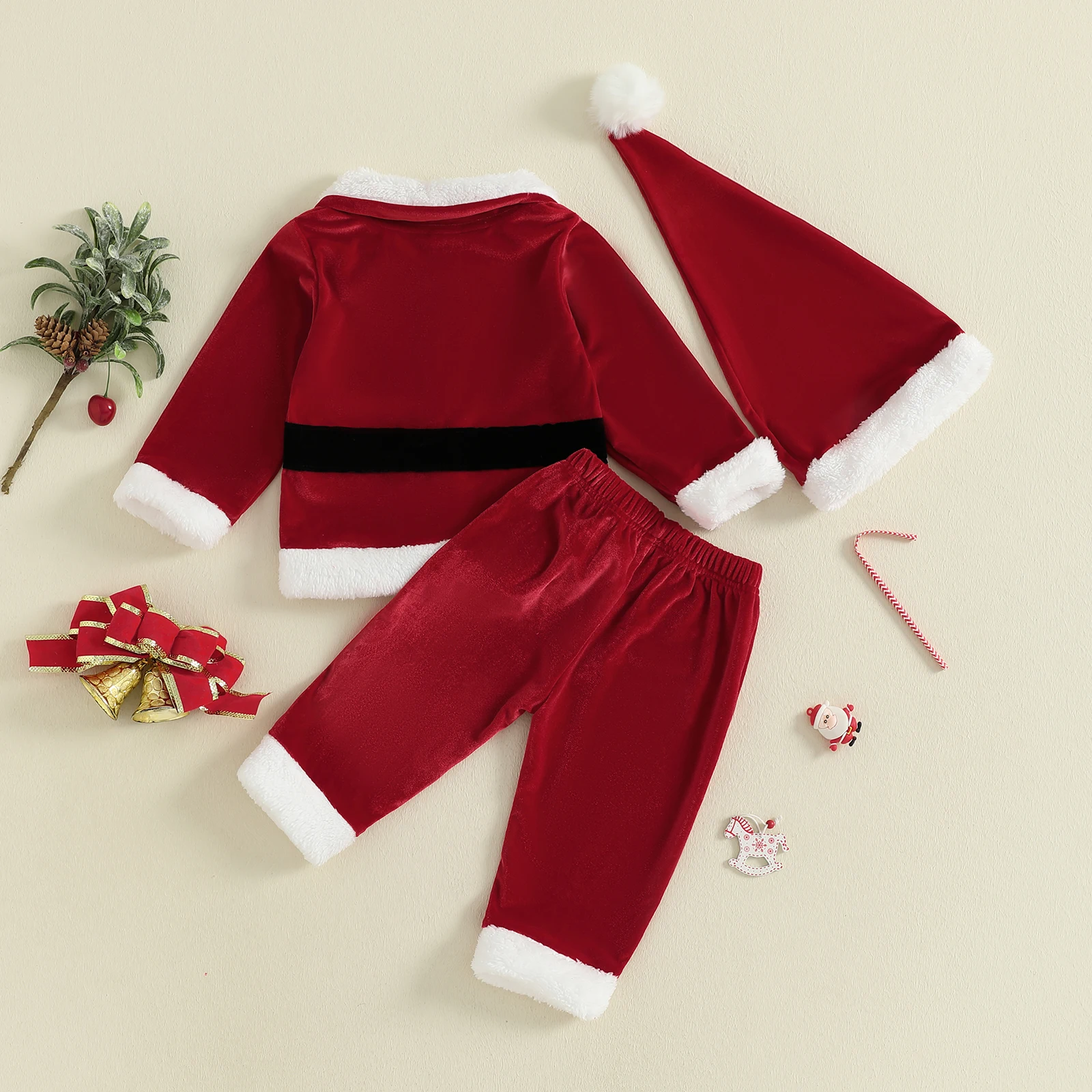 Christmas Infant Baby Girl Boy Velvet Clothes Toddler Long Sleeve Lapel Button Down Tops Elastic Waist Pants Santa Costume Set