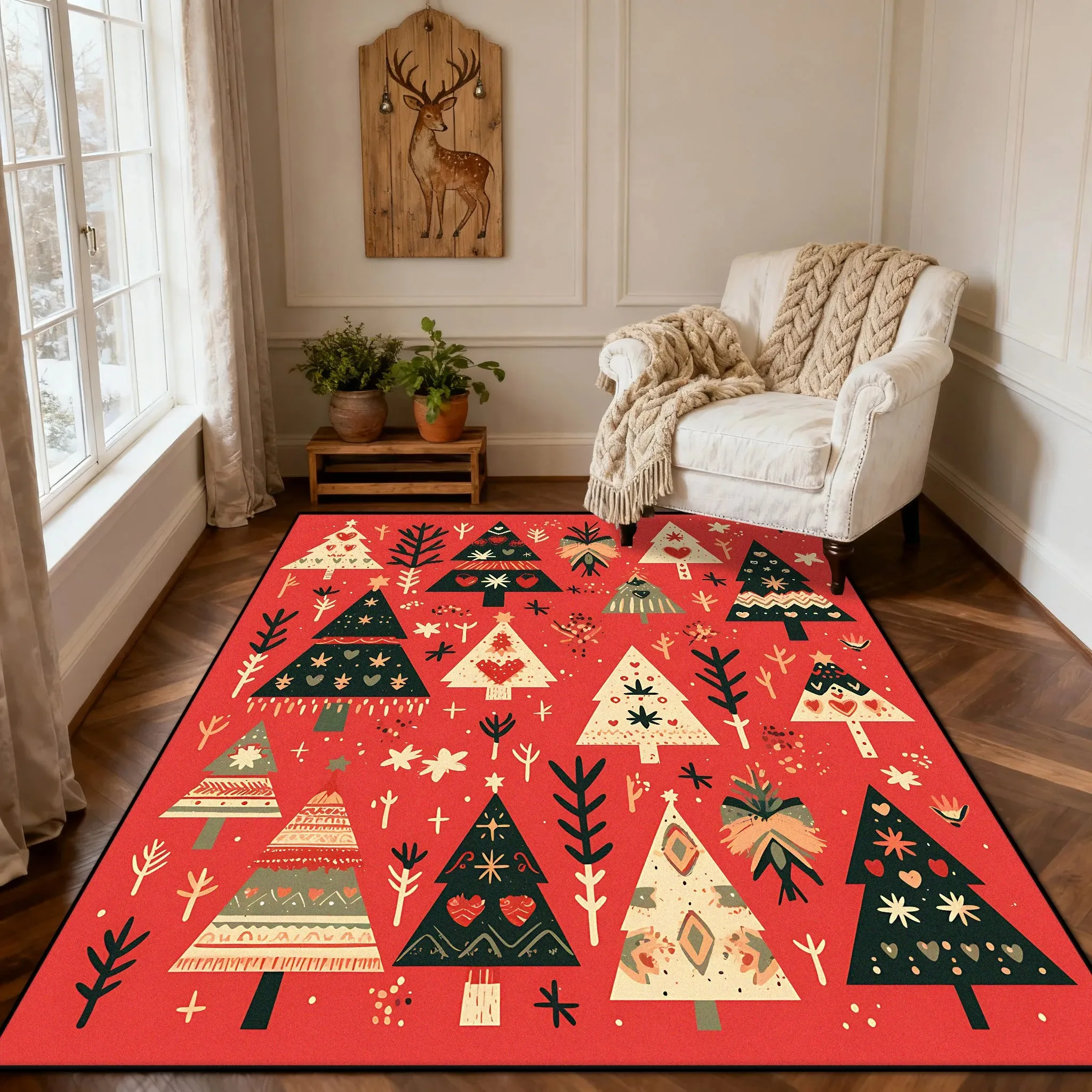Christmas Style Red Living Room Carpet Christma Tree Decoration Bedroom Fluffy Thickened Rug Indoor Cloakroom Floor Mat Bedroom
