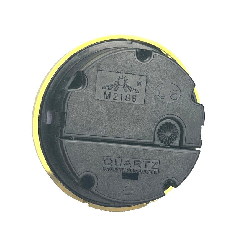 Clock insert features a golden/silver colored trim, and black arab numerals for easy-reading.