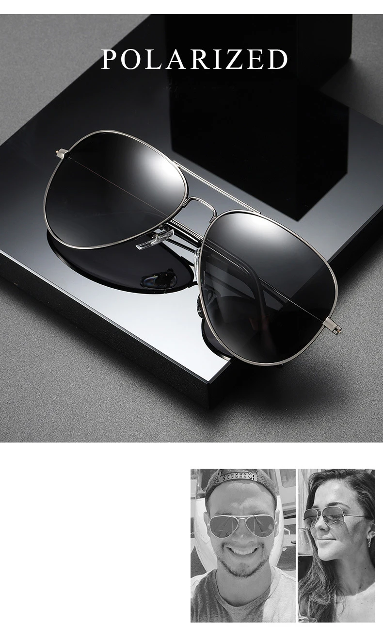 Classic Pilot Polarized Sunglasses Men Luxury Metal Black Aviation Sun Glasses Male Fashion Driving Vacation Shades UV400