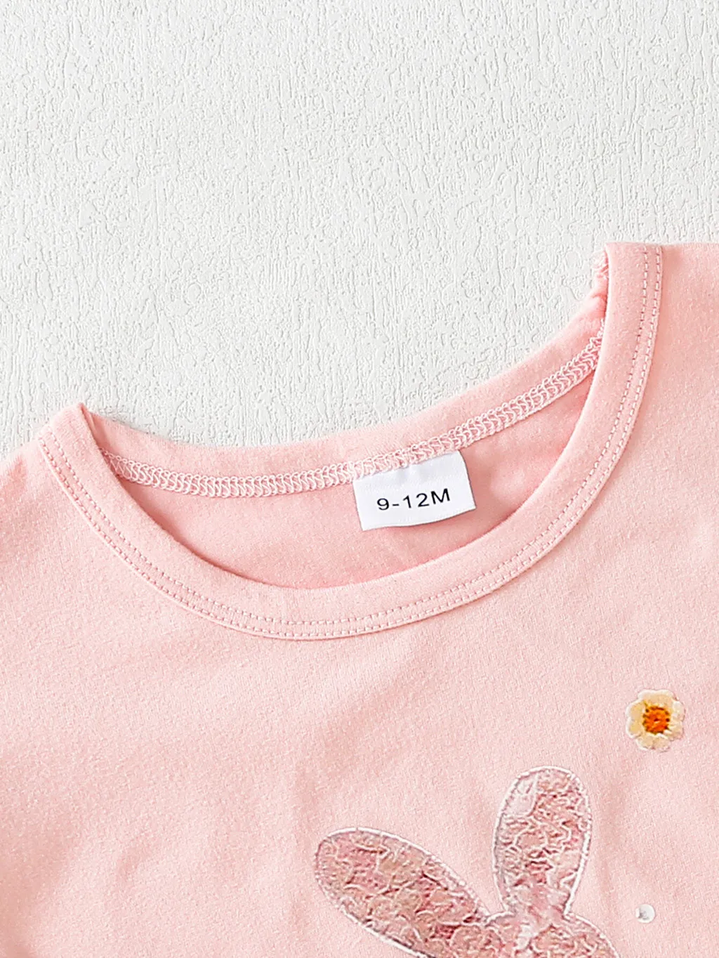 Clothes Set for 0-3Years Baby Girl Cute Cartoon Pattern Bow Short Sleeve Top + Denim Shorts Summer Costume for Toddler Girl