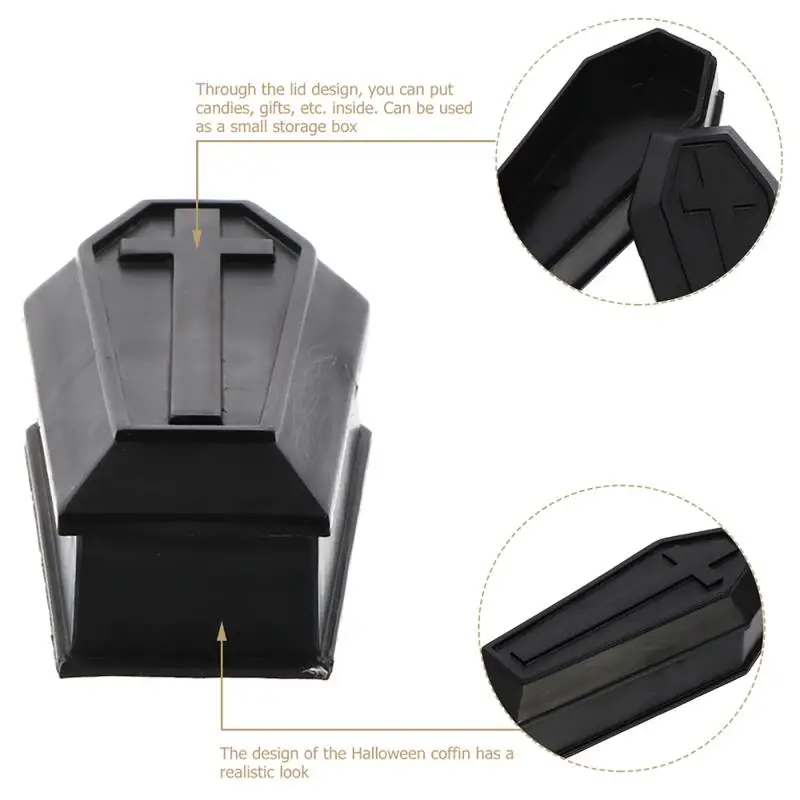 - The design of Halloween coffin has a realistic appearance. You can put this coffin around houses and tables to create a Halloween feeling.