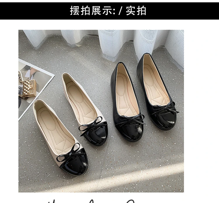 Comfortable Leather Version Flat Bottom Ballet Shoes Women's Slip-On French Butterfly Knot Versatile Easy Wear Casual Flats