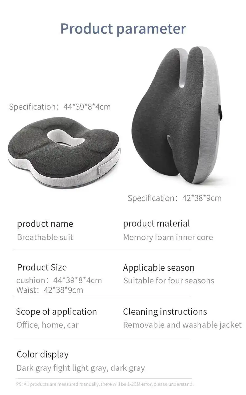 Comfortable Office Chair And Lumbar Support Pillow Set Memory Foam Seat Cushion Set Waist Protective Pad Office Reclining Pillow