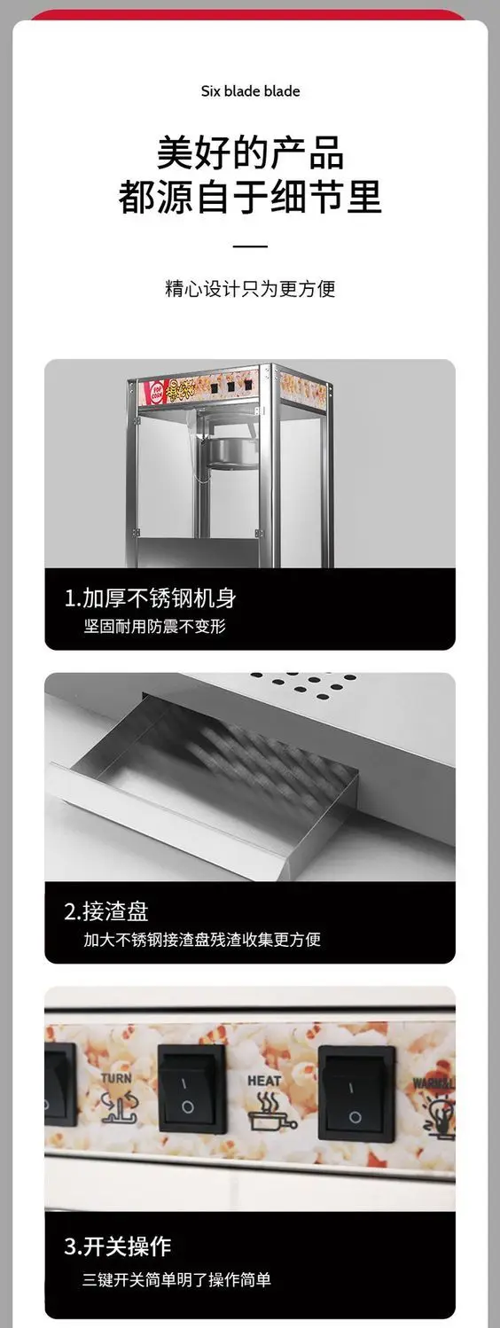 Commercial Popcorn Machine New Automatic Electric Hot Air Popper for Corn Puffing Snack Stall