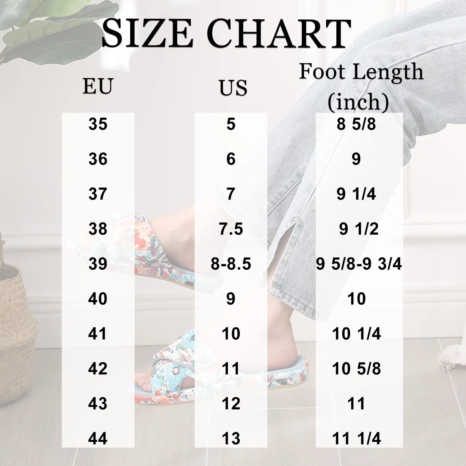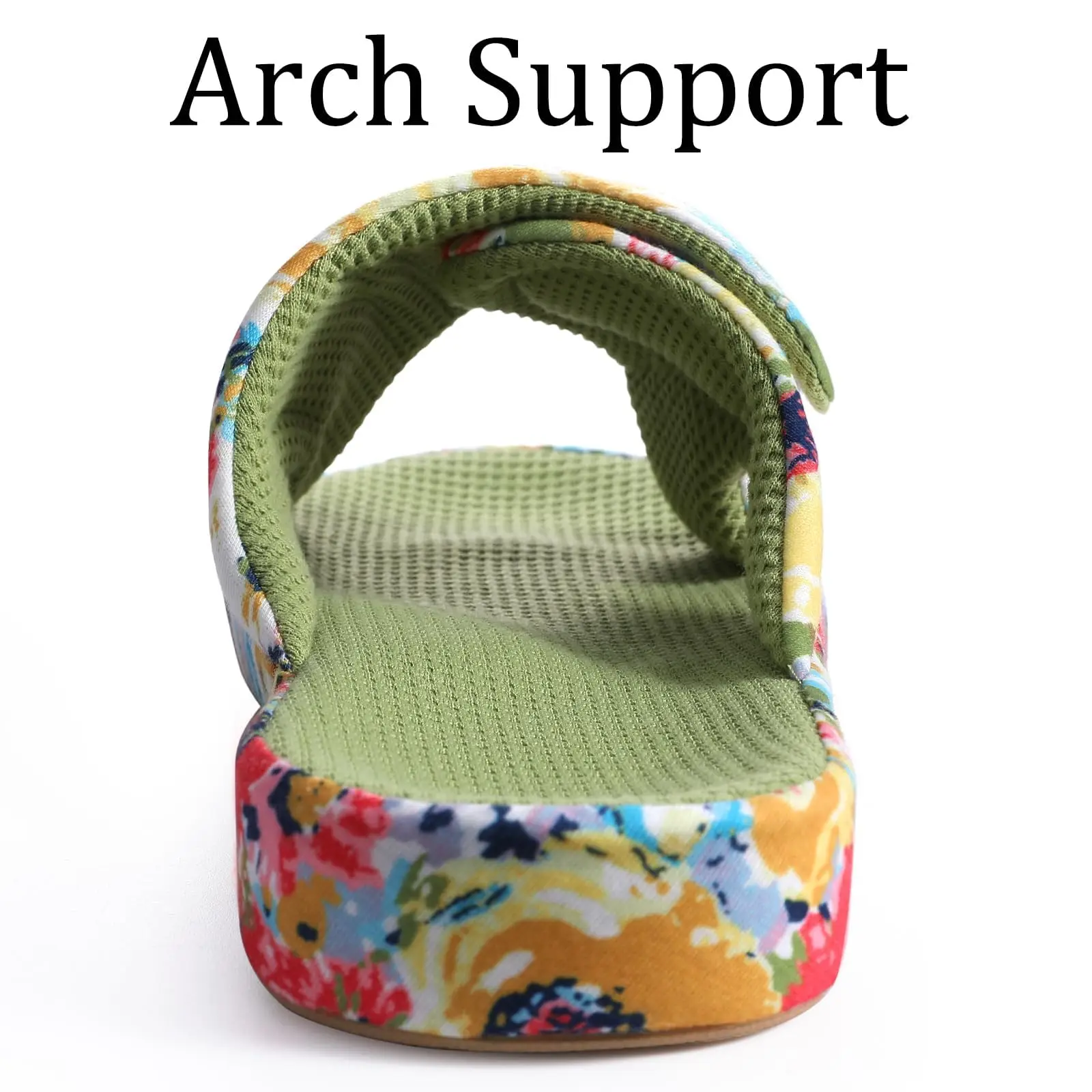 Summer Slippers for Women: Featured floral print upper brings you stylish and leisure feelings, adjustable straps for a customized fit, these Hawaii style open toe slippers keep your feet cool and comfort on hot summer days.