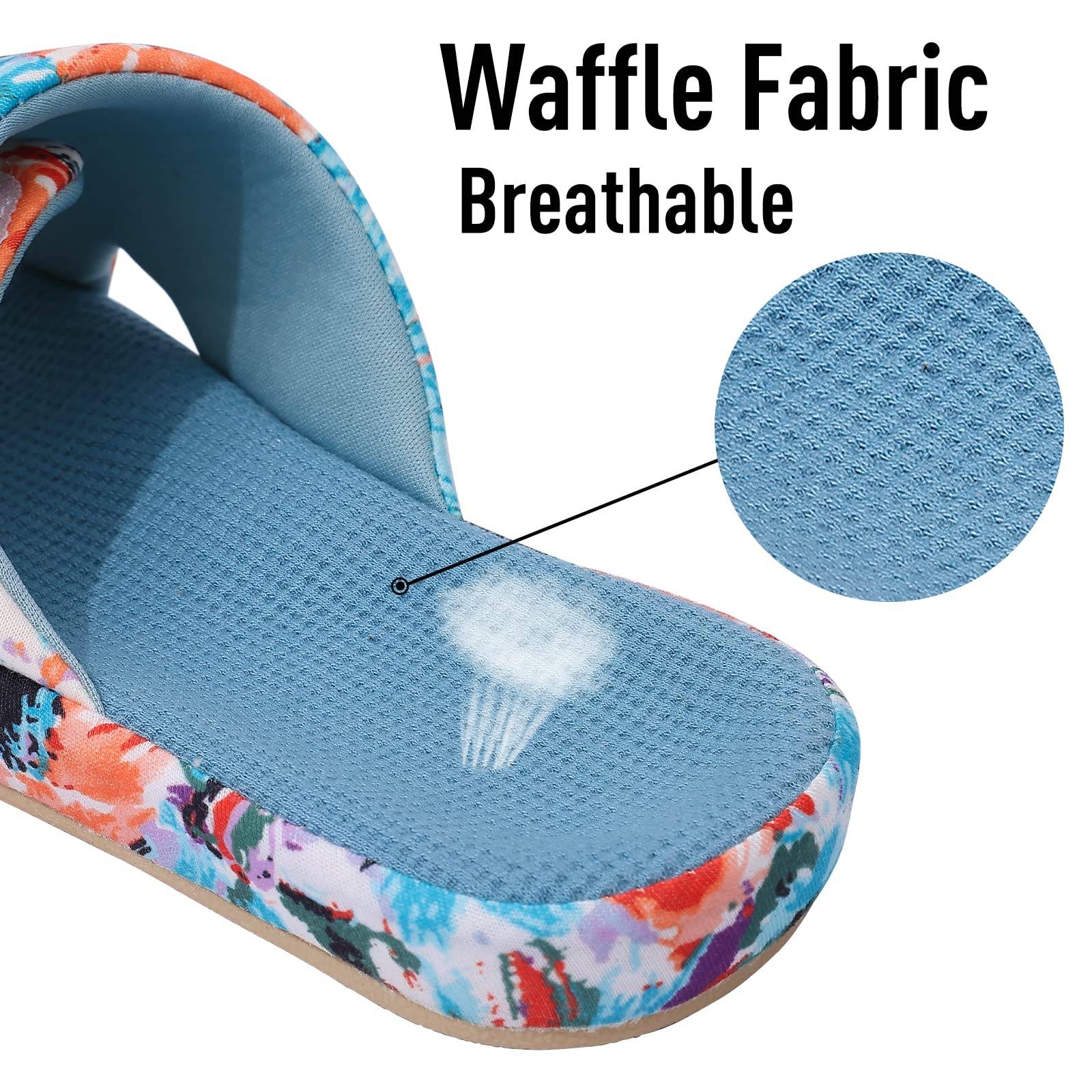 Breathable & Sweat Free: Skin-friendly cotton waffle cloth on footbed and lining allow great breathability, effectively absorbing sweat and preventing odors to keep your feet dry and fresh, making these bedroom slippers an ideal choice for everyday wear.