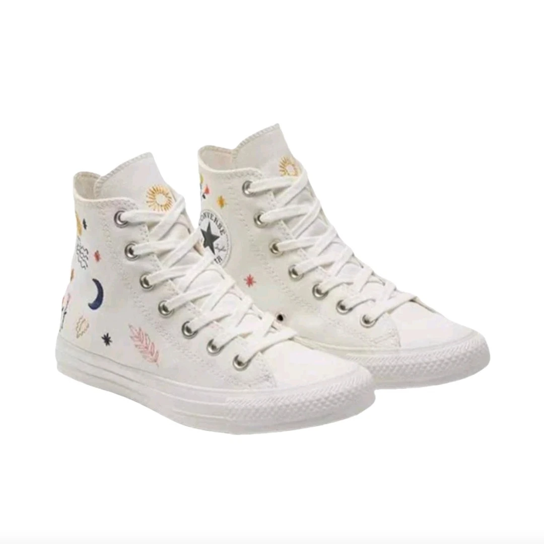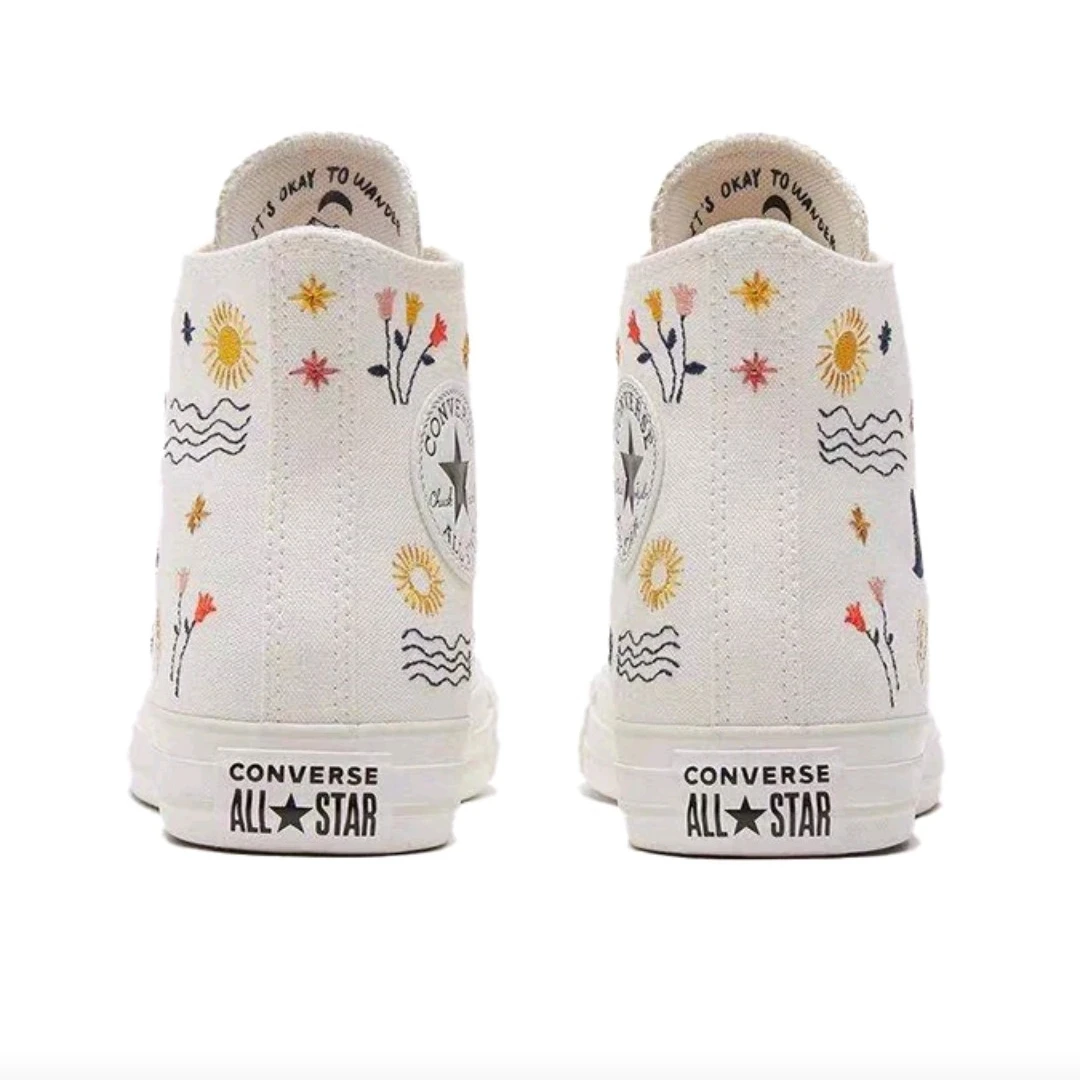 Converse Chuck Taylor All Star Women's Skateboarding Shoes, Embroidery Pattern, Casual, Canvas Sneakers, White