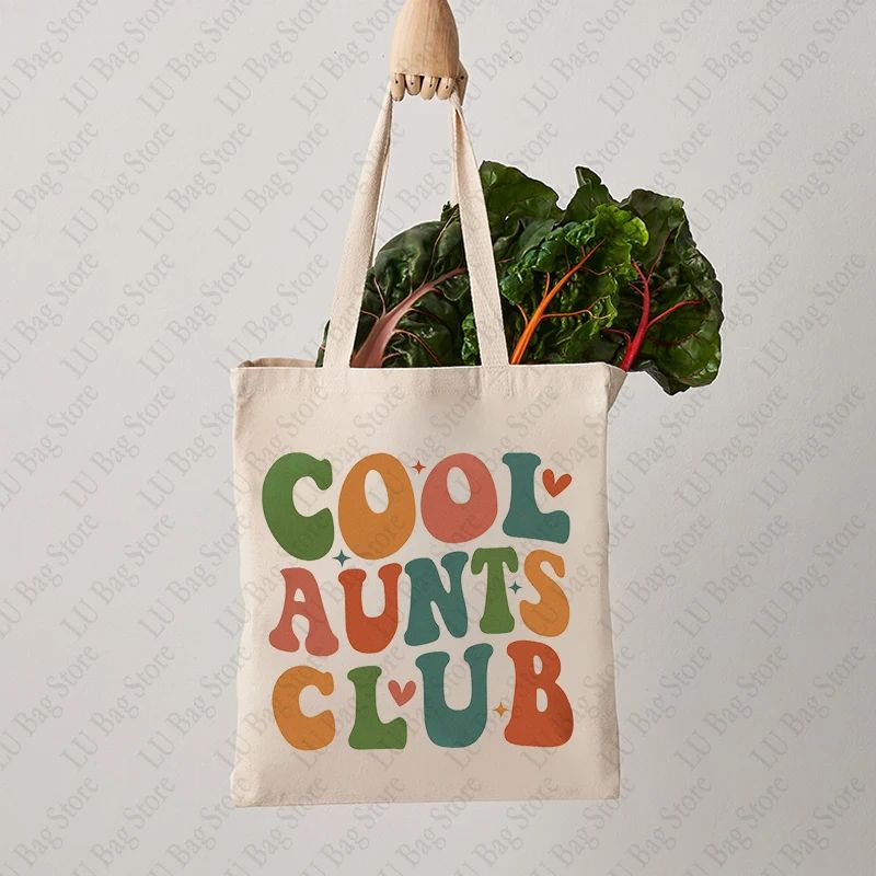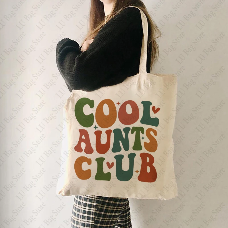 Cool Aunts Club Pattern Tote Bag Canvas Bags Shoulder Bag for Daily Retro Cool Aunts Eras Reusable Shopping Handbags