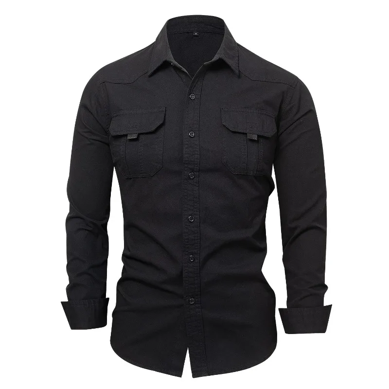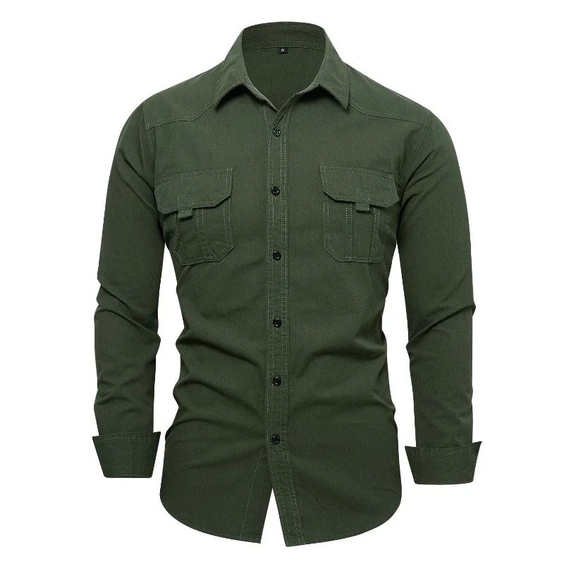 Cotton 100% Men Outdoor Multi Pockets Long Sleeved Cargo Shirts High Quality Man Loose Shirts New Male Solid Casual Shirts 3XL