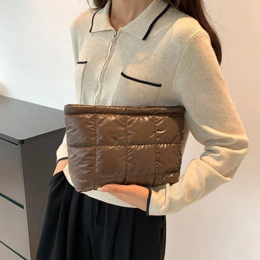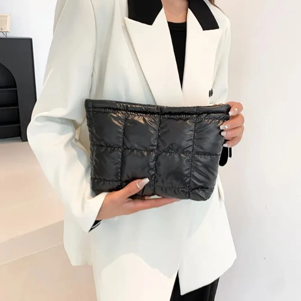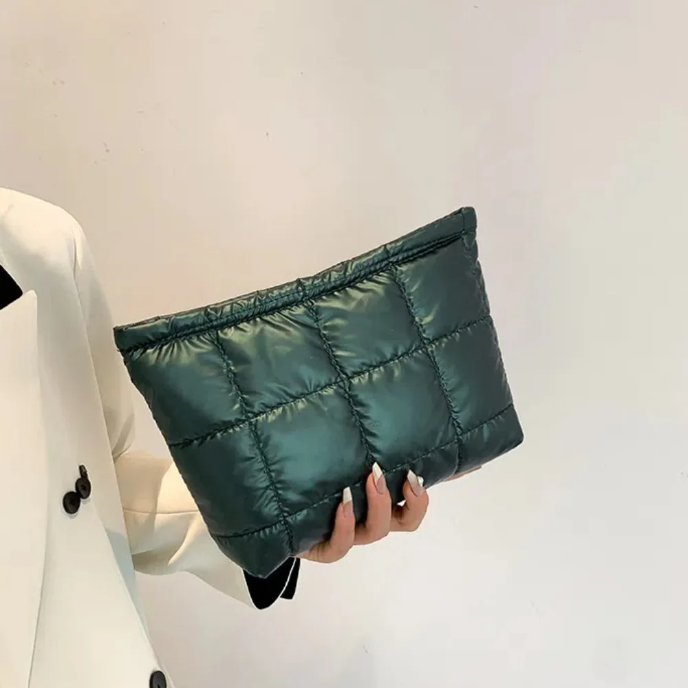 Cotton Filled Puffer Pouch Large Capacity PU Leather Puffer Padded Makeup Bag Sewn Korean Style Thick Plaid Clutch Bag Work