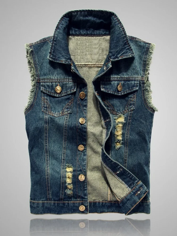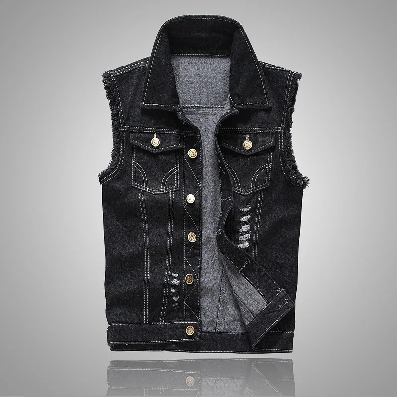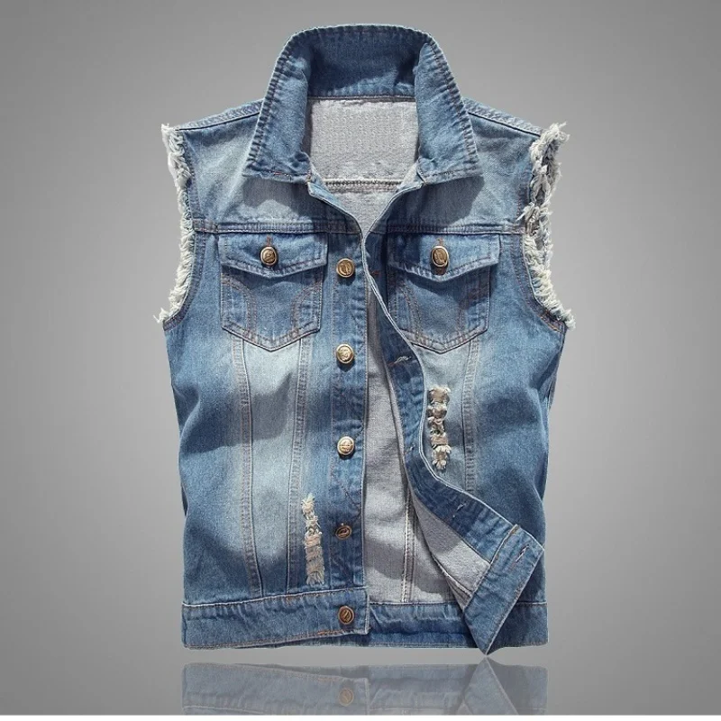 Cowboy vest men's spring and autumn new slim fit denim vest jacket men's casual sleeveless vest denim top with two chest pockets