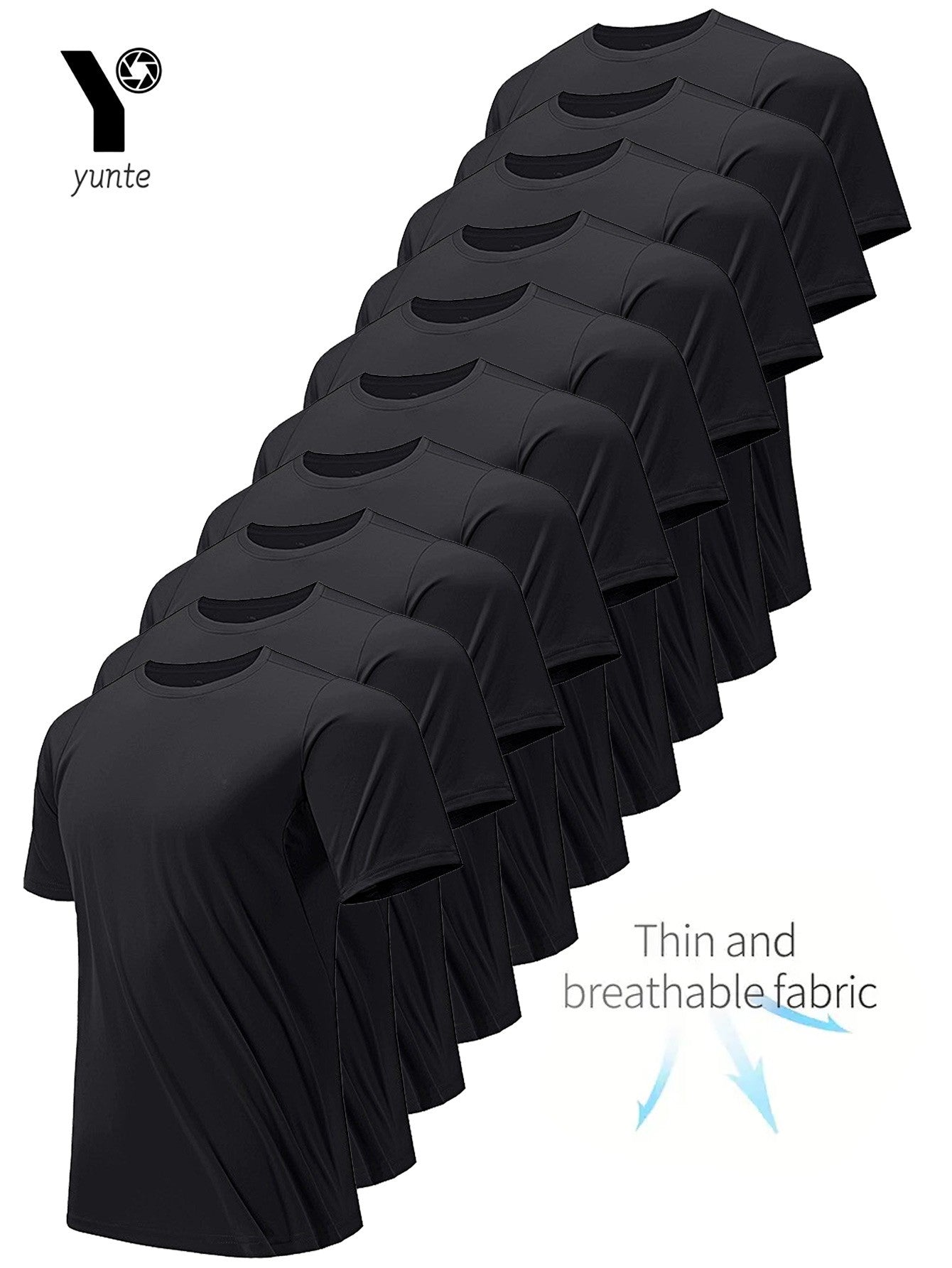 Crew T-Shirt10Pcs Black Ultralight Men Quick Dry Breathable Sweat Shirt for Fitness Gym Running Light Plaid Quick Dry Short Slee