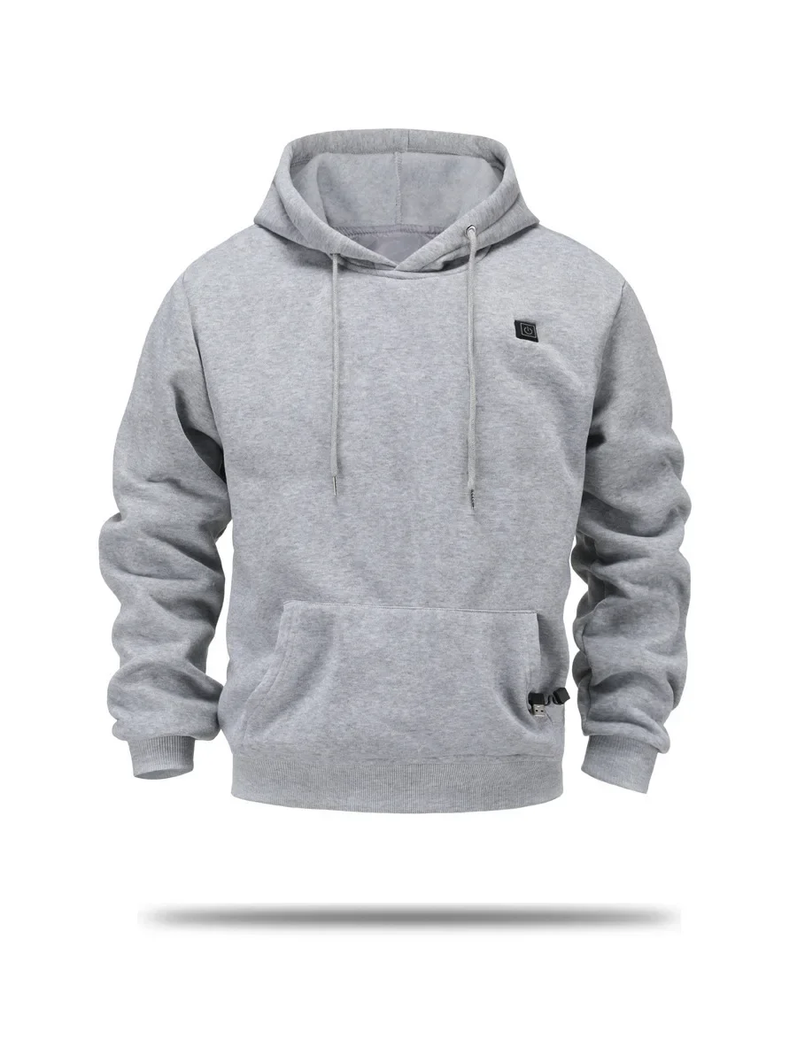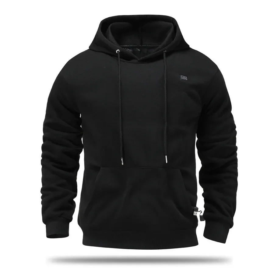 Cross-Border Men's USB Heated Fleece-Lined Sweatshirt Warm Outdoor Casual Clothing Electric Heating Hooded Sweatshirt