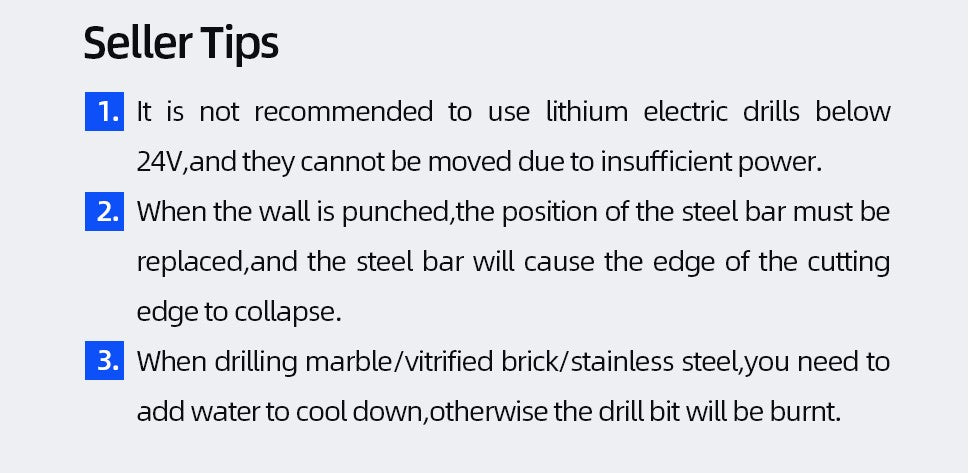 Drill diameter: 3mm/4mm / 5mm / 6mm / 8mm / 10mm / 12mm