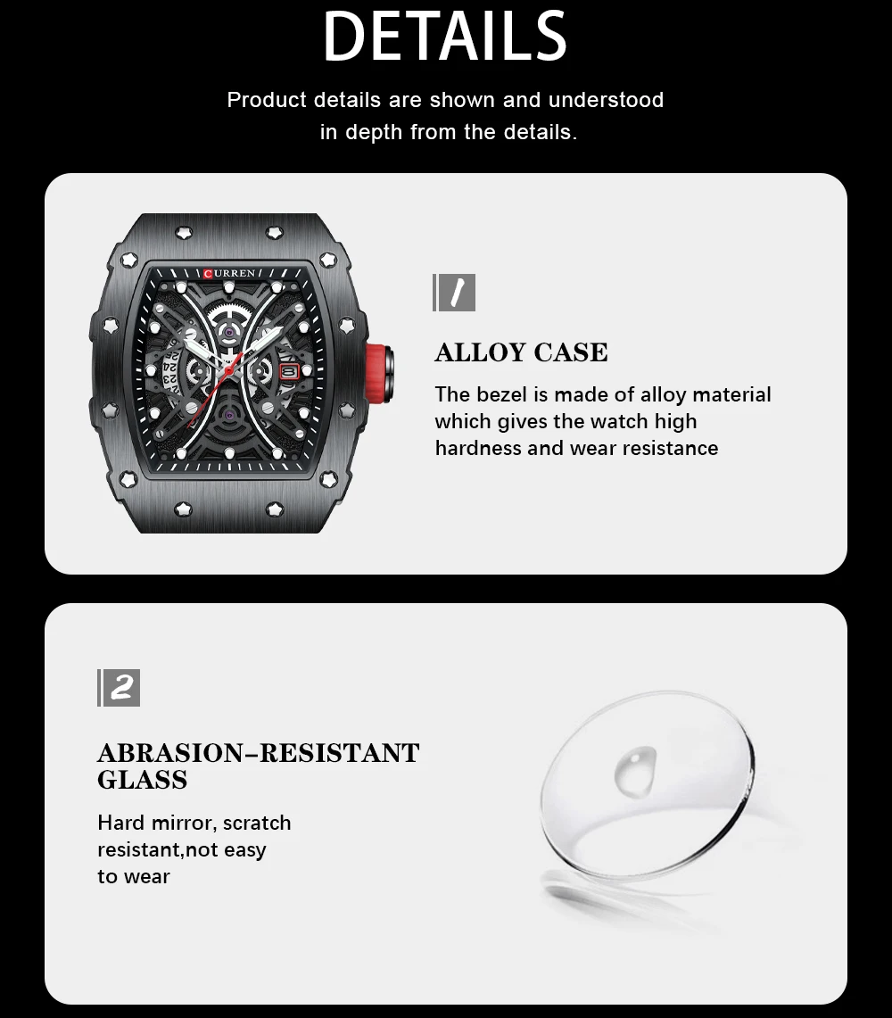 CURREN Men 3D Watch Top Brand Quartz Stainless Steel Watches Waterproof Creative Clock Silicone Strap Wrist watch