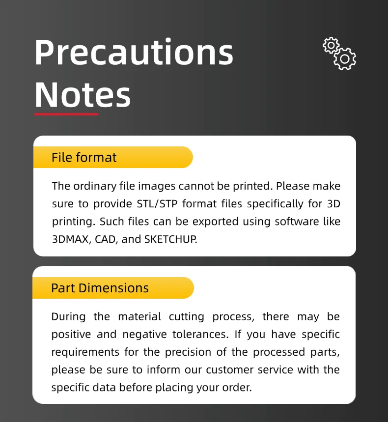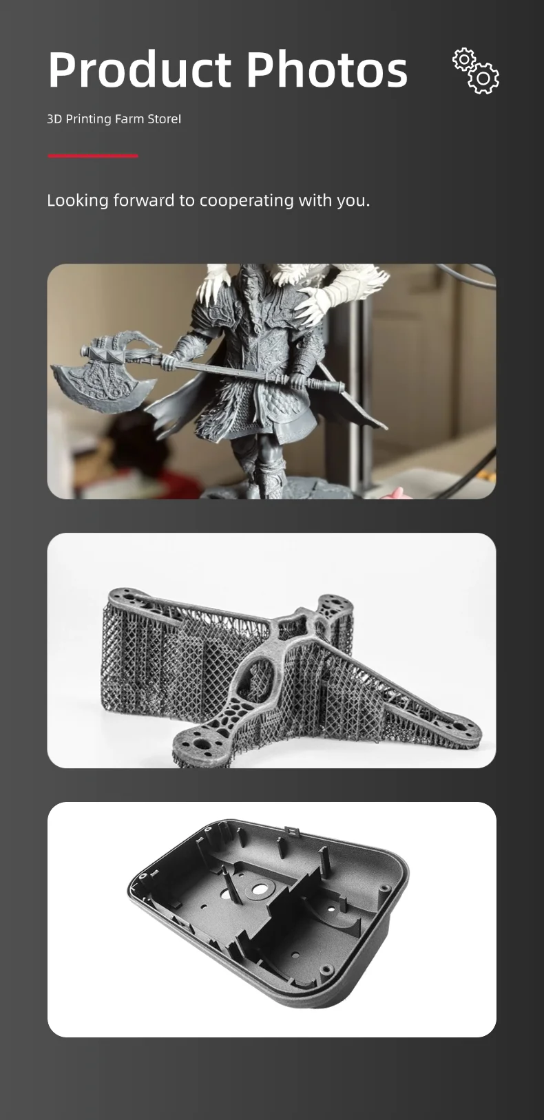 If you have any requirements for 3D printing, please contact us through the Aliexpress platform or by email at engineer@upwardcreating.com
