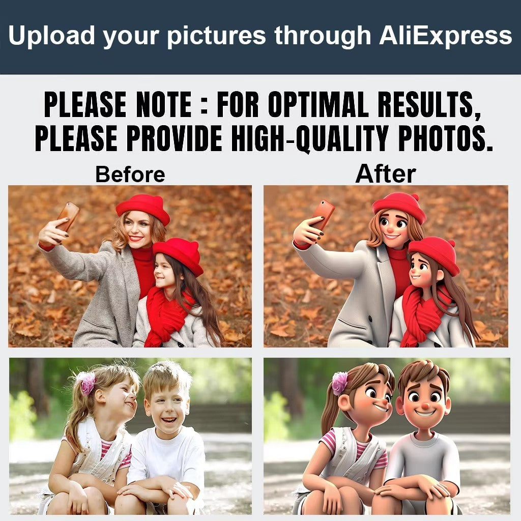 Custom Cartoon Style Your Photo Canvas Print Portrait Couple Family Pet Animal Wall Art Poster for Modern Living Room Home Decor