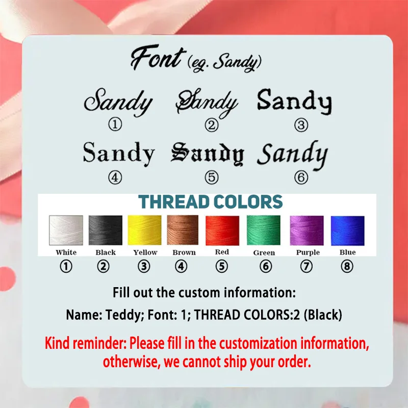 A: Please click Buy now -Choose color or style - Customize now,Text Your Name, Font Style and and Thread Color