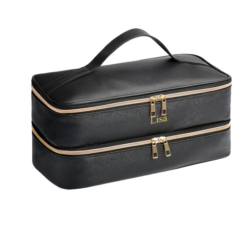 Customized name PU leather double-layer hair dryer storage bag, beauty tool box, hair curler accessories storage box