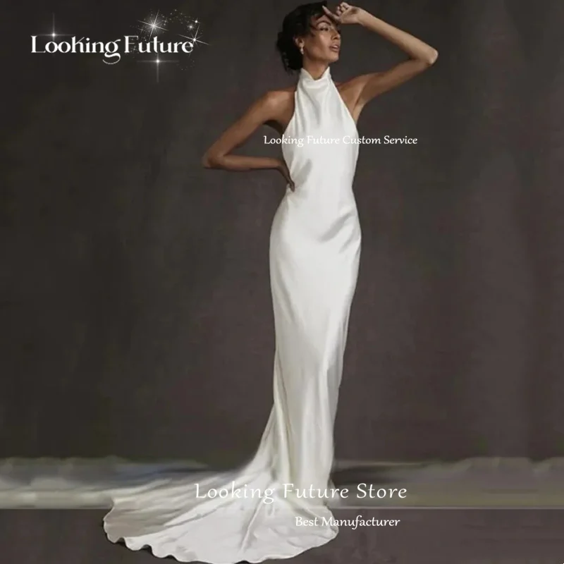Customized Simple Mermaid White Wedding Dress Sexy Backless Bridal Halter Sleeveless Gown Vestido Elegant Floor-Length 2025