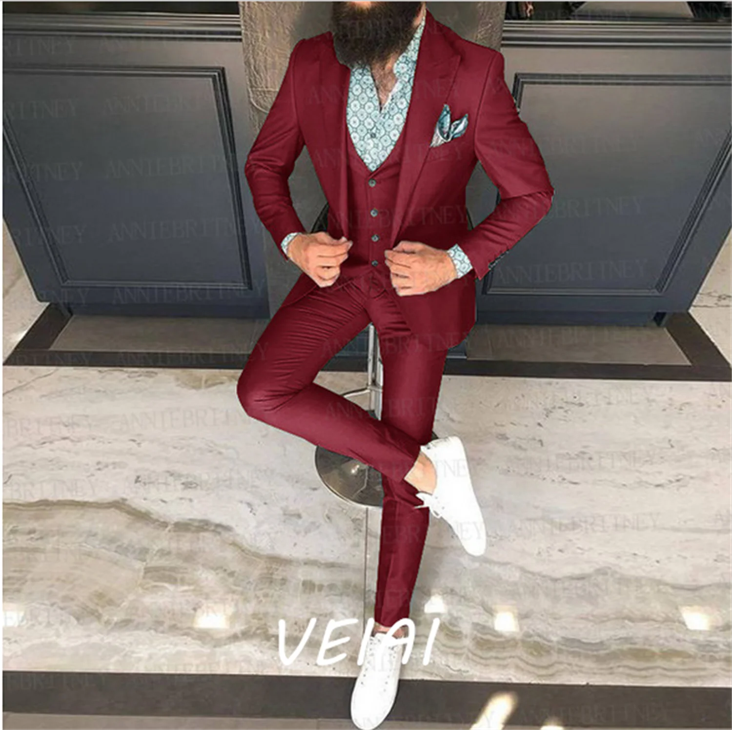 CustomizedMen Slim Fit Suits 3 Pieces Tailored Oversize Men Blazer Dress Groom Wedding Man Suit 2022 Fashion Tuxedo Jacket Vest